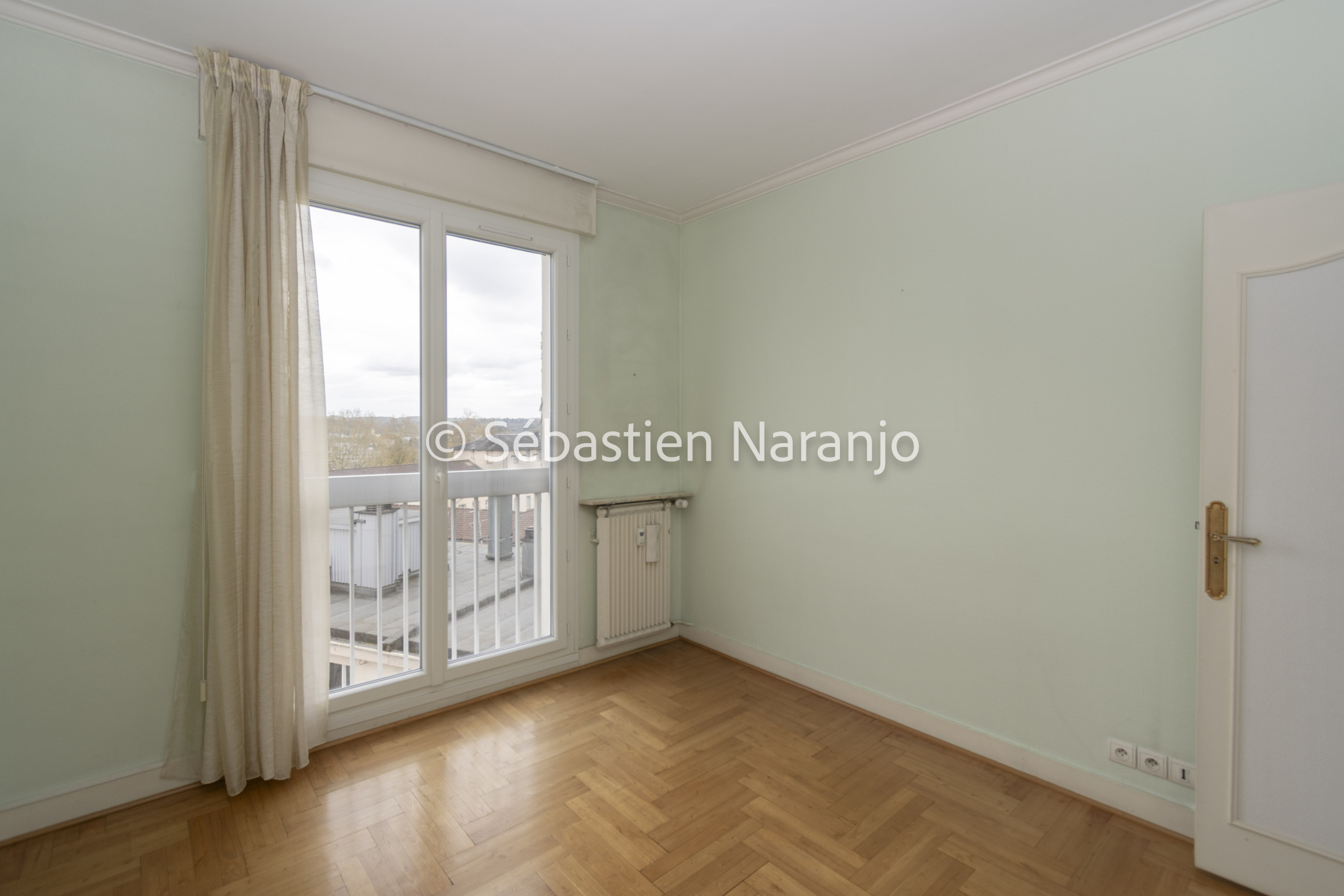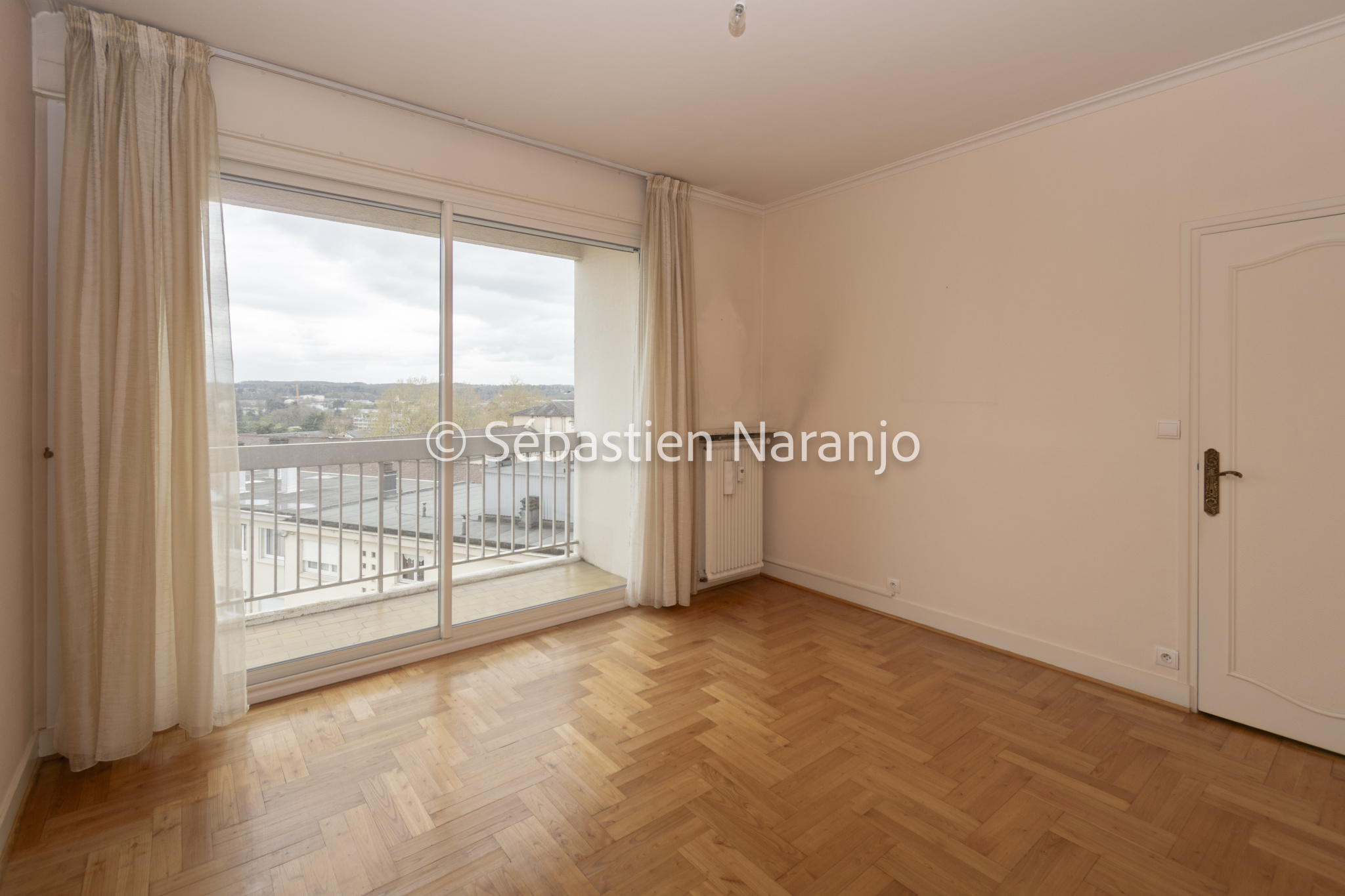 Il se compose d'un salon lumineux d'environ 40 m2 ouvrant sur un balcon avec vue dégagée, d'une cuisine indépendante équipée avec cellier, de deux chambres dont une avec dressing et balcon, d'une salle de bain, d'un WC séparé ainsi que de nombreux rangements.