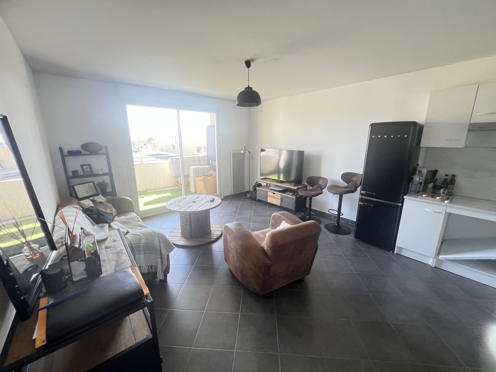 LA GARDE proche centre, appartement type 2 env.48m2 vendu loué, situé dans une résidence de standing avec ascenseur. Ce bien en très bon état, comprend un hall d'entrée avec rangement, un beau séjour de 25m2 env. avec cuisine américaine, une chambre de 12m2 env. avec placard intégré, une salle de bain avec baignoire, un WC indépendant et une terrasse de 10m2 bénéficiant d'une agréable vue dégagée sur le village et sans vis-à-vis. Pour le stationnement une place de parking privée sécurisée sous l'immeuble. Locataire sérieux, loyer 798EUR Charges comprises.