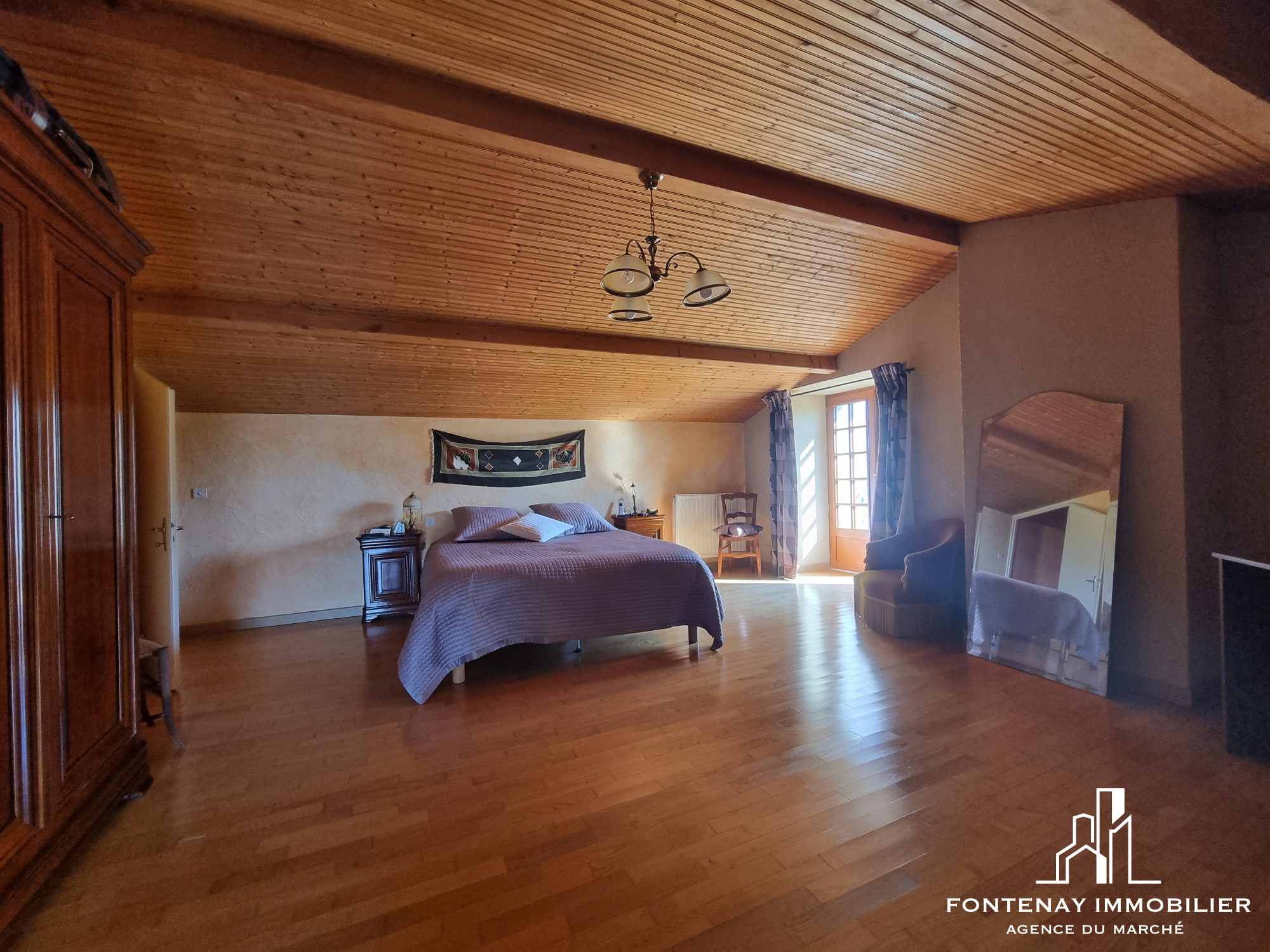 FONTENAY IMMOBILIER. Votre Conseiller Benoit MONNEREAU joignable au O6.O2.O8.98.85 vous propose à SAINT HILAIRE DE VOUST (10 minutes de la CHATAIGNERAIE) cette maison ancienne rénovée offrant de très beaux volumes, le tout dans un cadre verdoyant au calme et avec accès sentier pédestre à côté de la maison.