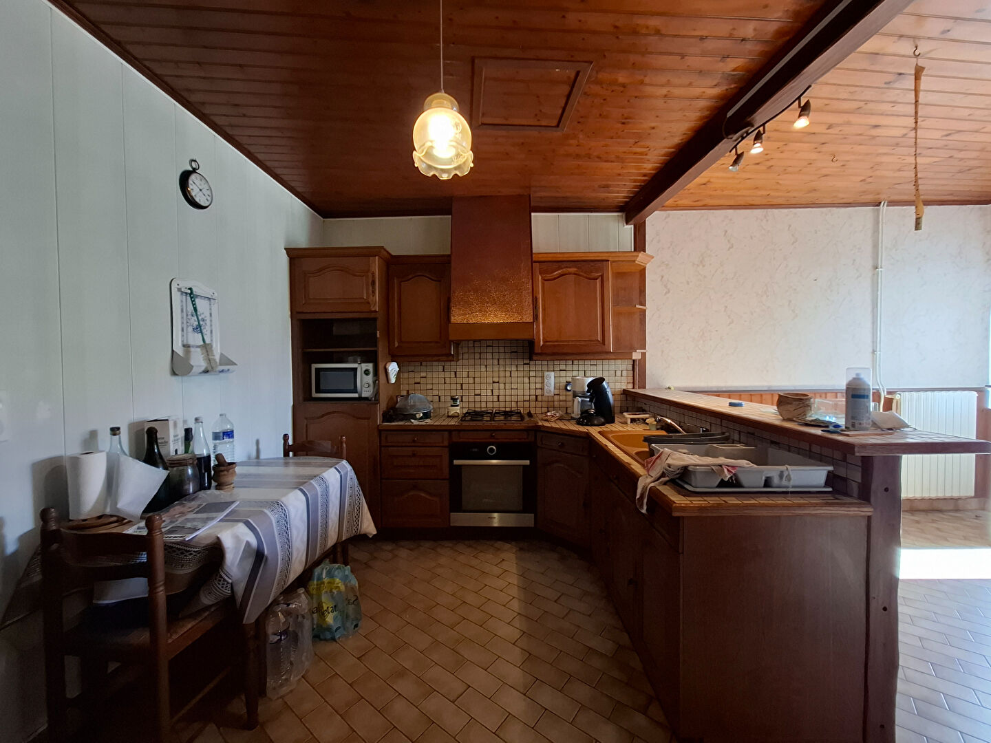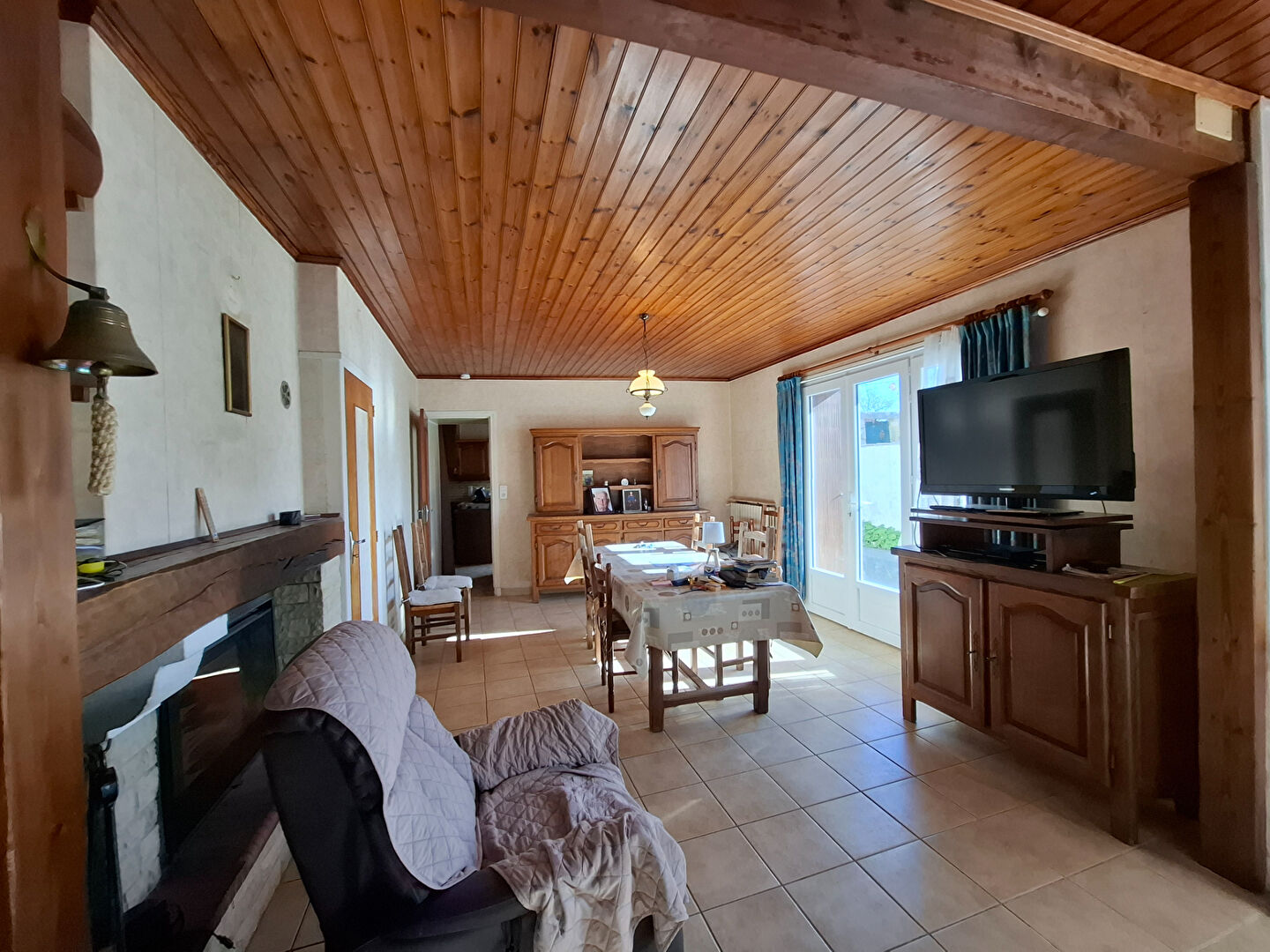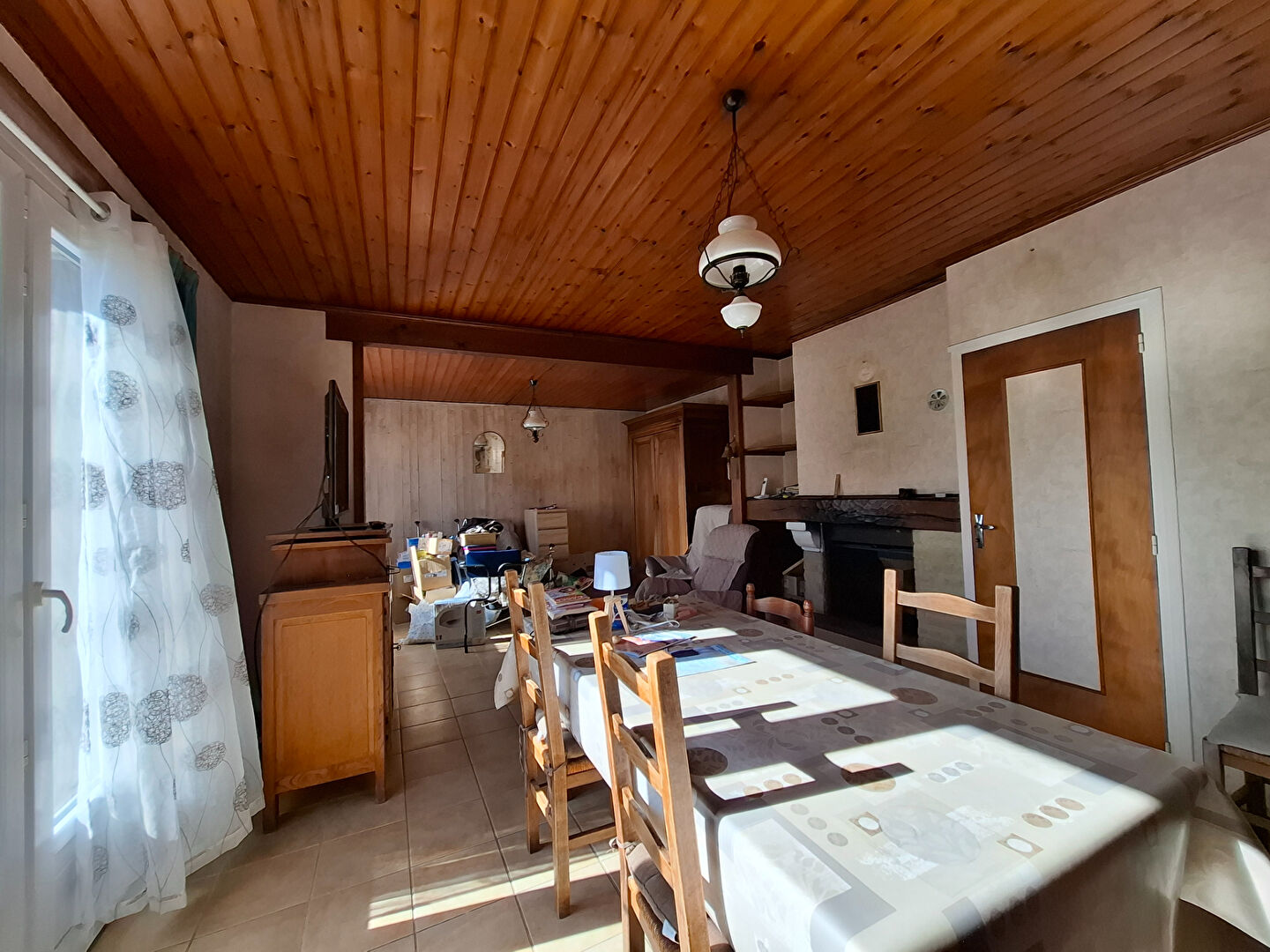 Maison en pierres à rafraichir, proposant une belle pièce de vie, cuisine aménagée et équipée, salle d'eau, wc.A l'étage deux chambres.
