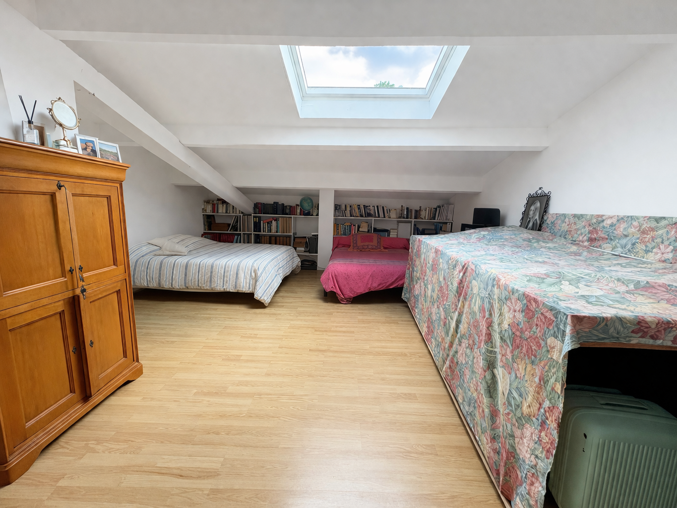Le rez-de-chaussée propose deux véritables suites parentales, offrant un agencement rare et particulièrement appréciable. À l'étage, un espace bureau surplombe le séjour et apporte beaucoup de charme à l'ensemble, tandis qu'une très grande chambre mansardée complète le niveau. Un autre espace permet également d'envisager facilement la création d'une quatrième chambre selon les besoins et les projets de chacun.