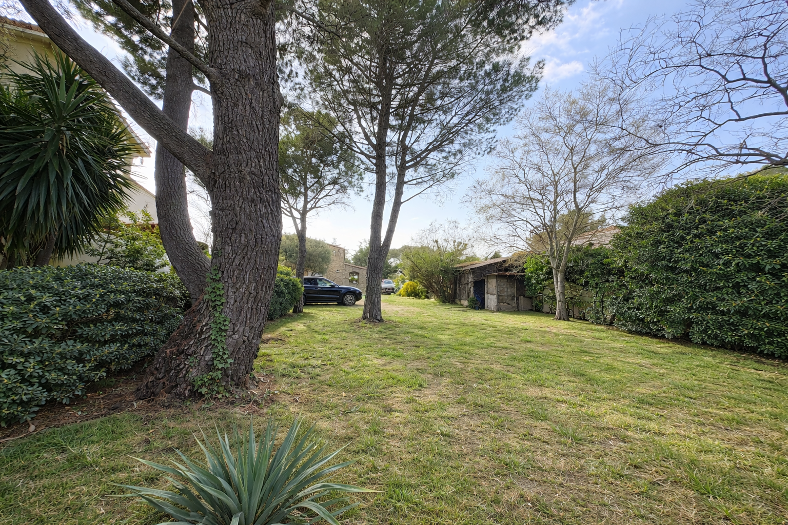 À l'extérieur, le terrain arboré constitue un véritable atout. Il permet de profiter d'un bel espace de jardin, d'accueillir facilement de nombreux véhicules grâce à ses nombreuses possibilités de stationnement, et offre également un potentiel d'agrandissement intéressant pour un futur projet. Un cabanon vient compléter l'ensemble.