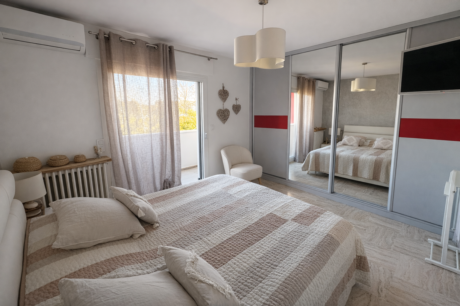 L'espace nuit propose une chambre avec placard, ainsi qu'un accès à un extérieur, détail rare et particulièrement appréciable qui vient renforcer le confort du bien.