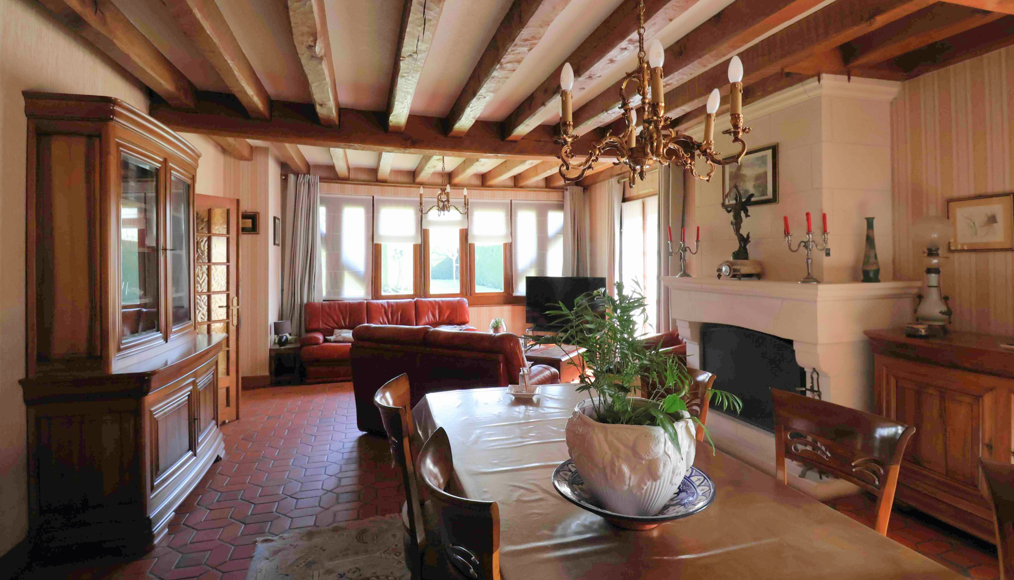 À l'étage : dégagement, trois chambres, toilettes, salle d'eau, une salle de billard et à la suite un petit salon, un grenier aménagé. Chauffage gaz par le sol. Cave, deux garages, nombreux rangements.