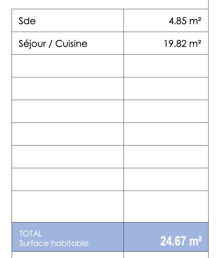 Beau studio au 6è et dernier étage de 24,67m2 :