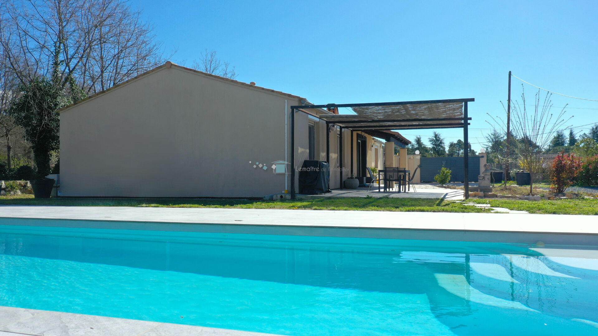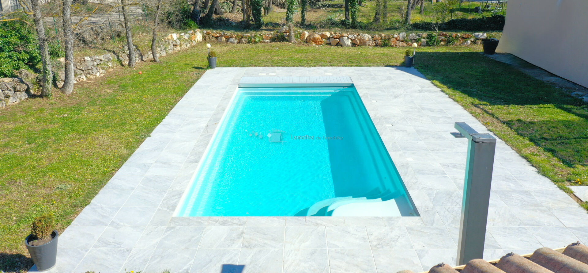 Belle espace piscine de 10x4 avec volet intégré et pompe à chaleur.