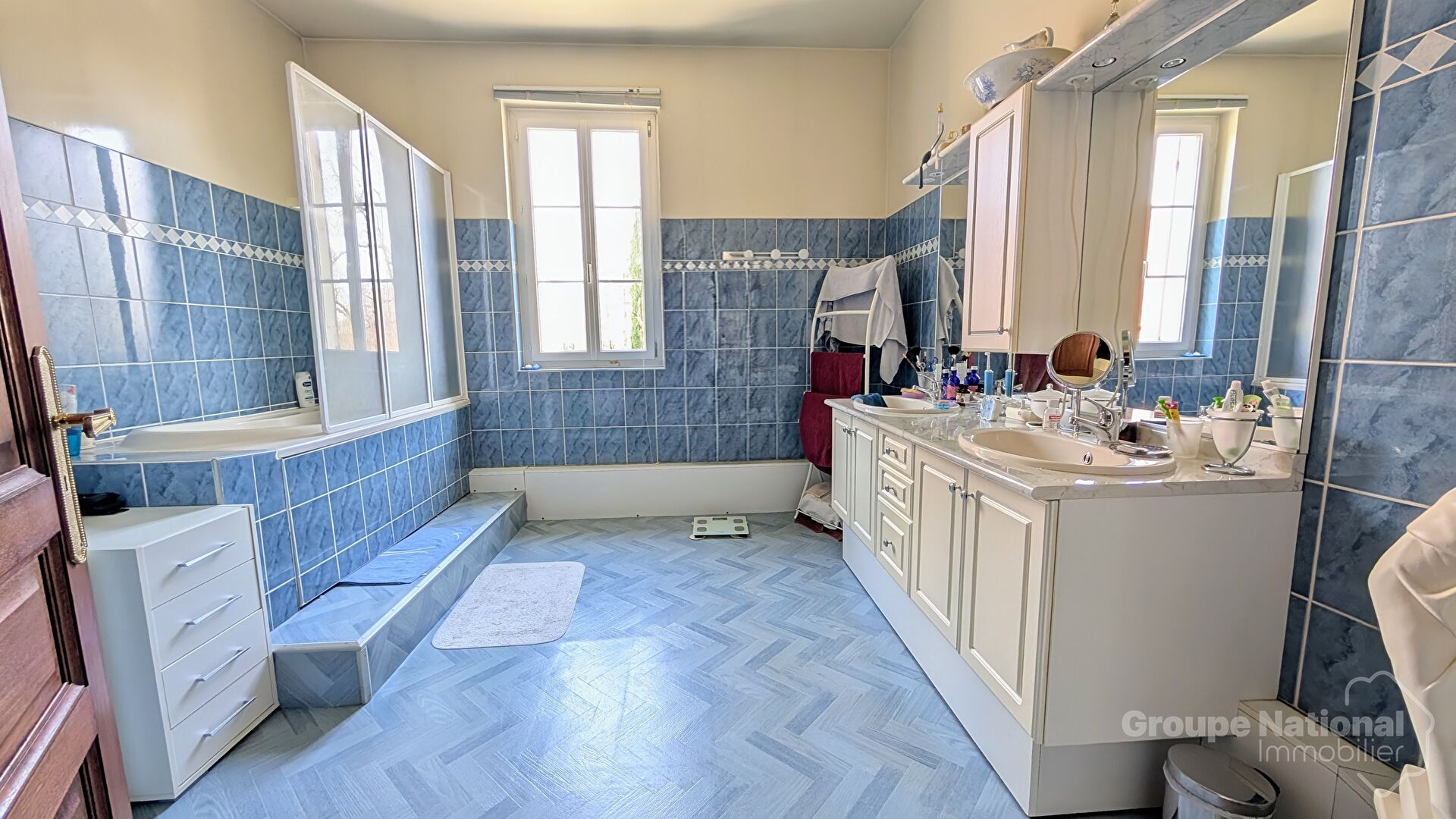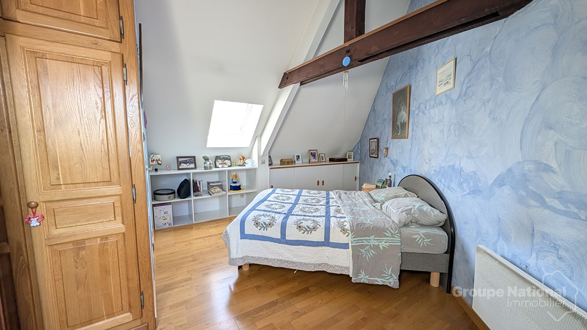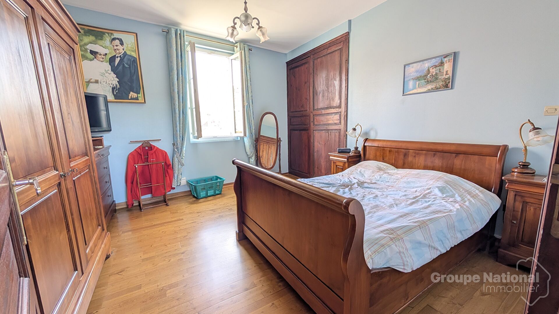 A l'étage: dégagement, 2 chambres dont une avec placard, salle de bain, WC.