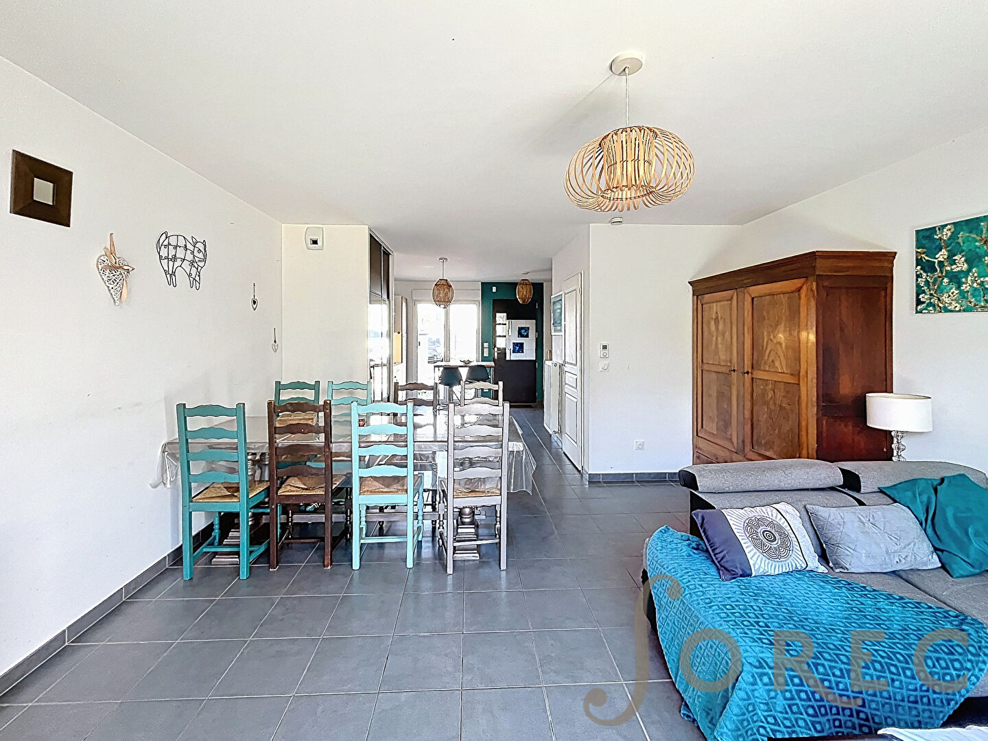 Construite en 2018, cette maison encore sous garantie décennale offre des prestations modernes et fonctionnelles. Au rez-de-chaussée, vous découvrirez une belle pièce de vie de 37 m² comprenant cuisine, salon et séjour, avec un accès direct à une terrasse de 37 m². Un espace WC avec coin buanderie complète ce niveau.