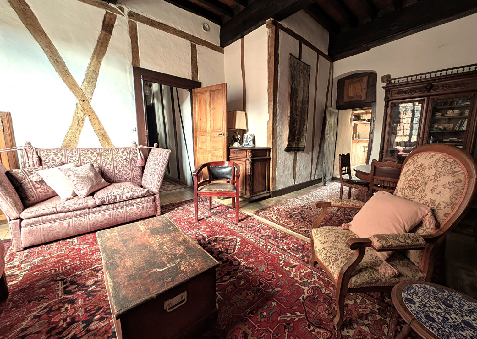 Beaucoup de charme pour cette maison à qui l'on a su conserver des éléments authentiques : cheminées, plafonds à la française, superbe escalier, colombages, murs chaulés...