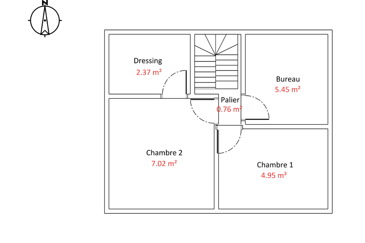 - À l'étage : deux chambres ainsi qu'un espace bureau.