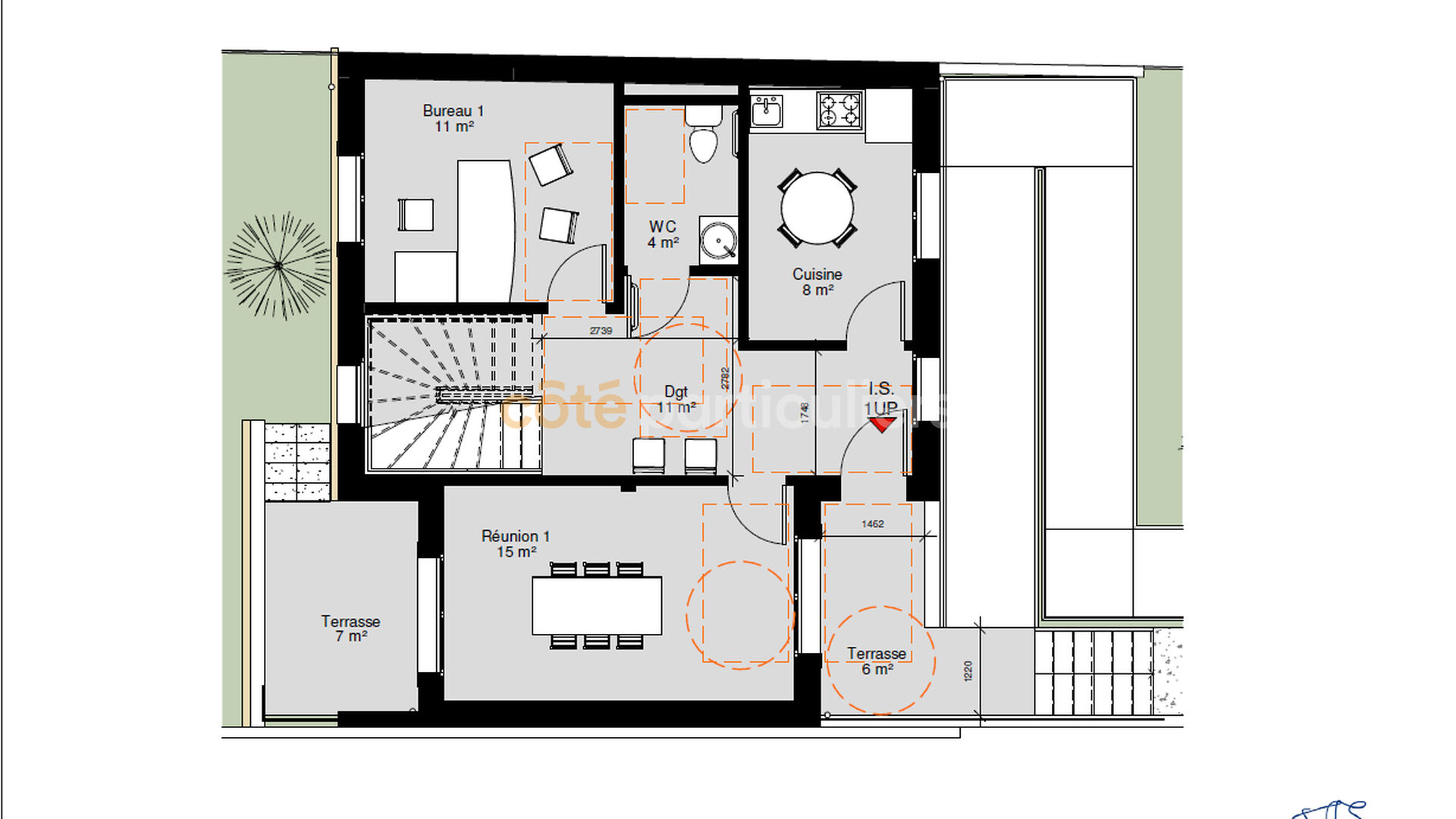 Terrain bénéficiant d'un permis de construire accordé pour une opération à usage mixte , surface de plancher autorisée 108 m² présentant une façade d'environ 9 mètres. Possibilité usage tertiaire (professions libérales, bureaux, artisans).