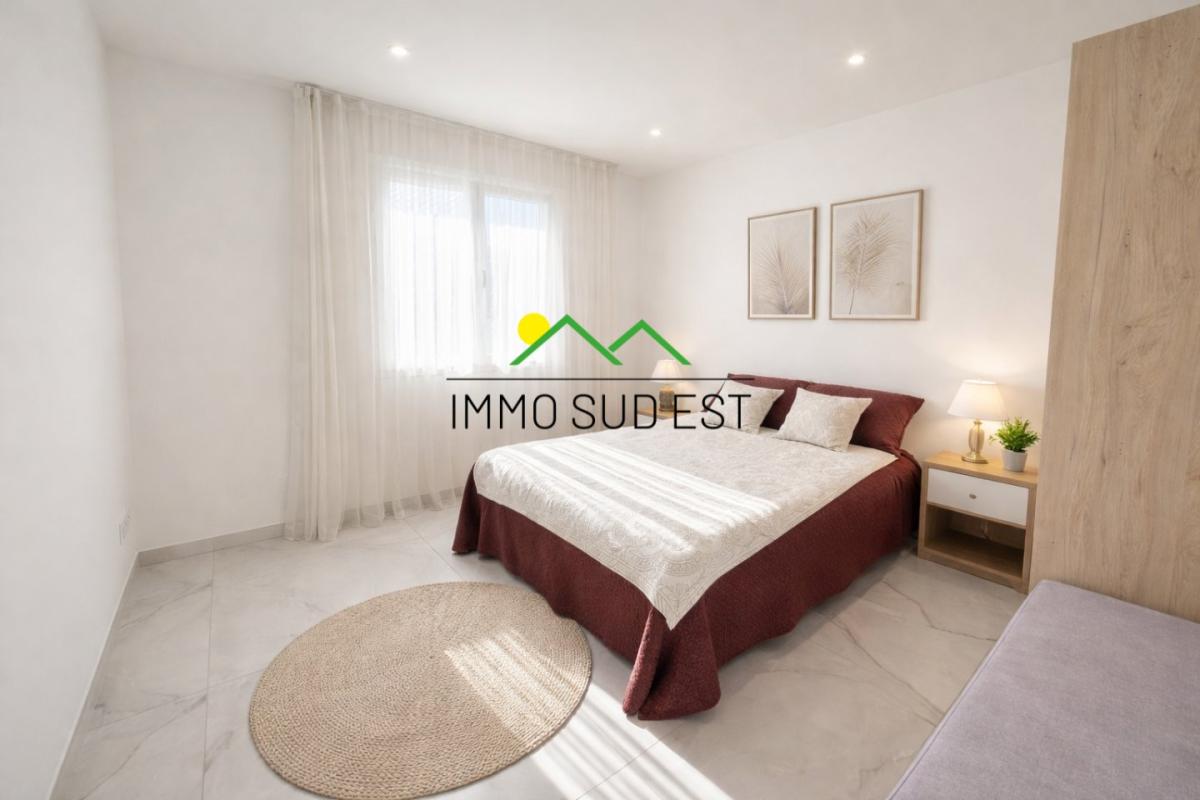 La maison se déploie sur un seul niveau et offre des volumes généreux et lumineux. Le séjour de 60 m², ouvert sur l'extérieur, bénéficie d'un ensoleillement constant grâce à de larges baies, qui invitent le jardin à entrer dans la pièce de vie. La cuisine ouverte et entièrement équipée, pensée pour la vie familiale et la convivialité, prolonge naturellement l'espace salon-salle à manger et facilite la circulation.
