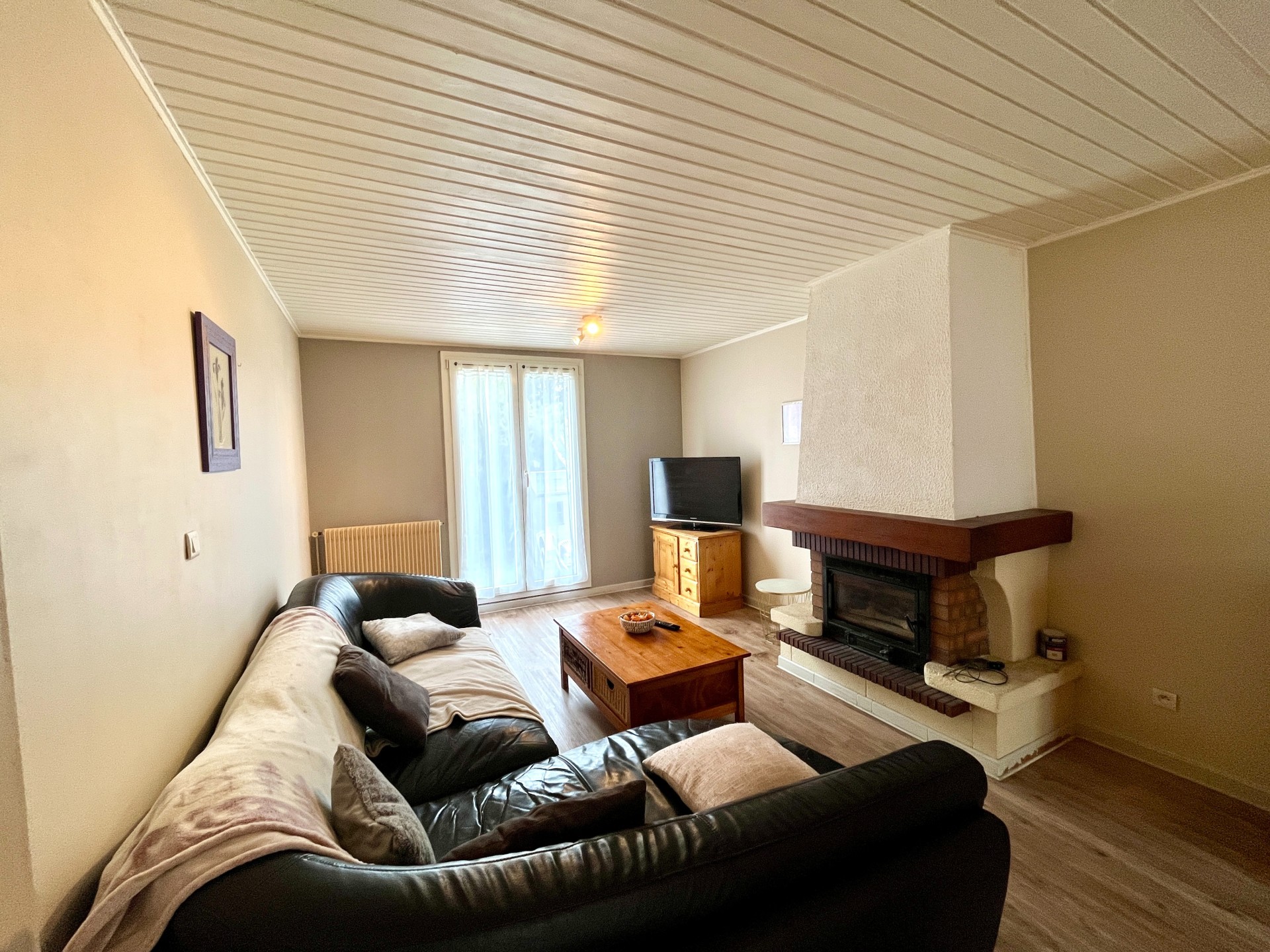 - salon séjour avec cheminée et accès terrasse et jardin