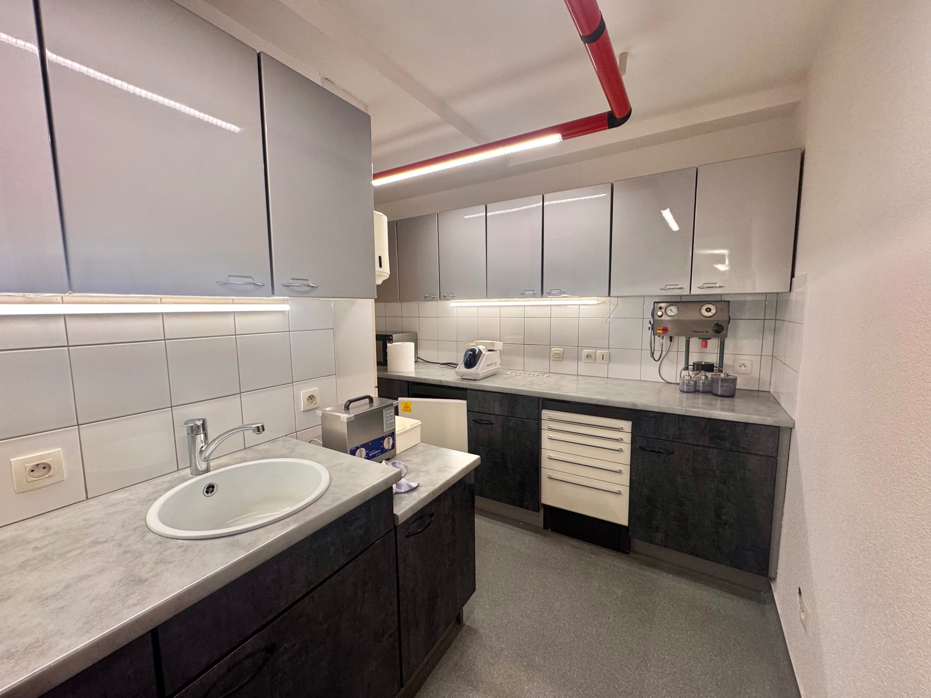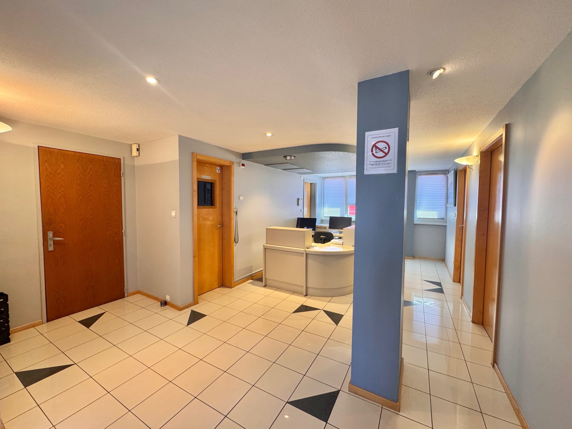 Il se compose aujourd?hui d?une entrée avec espace d?accueil pouvant faire office de séjour, d?une salle d?attente pouvant compléter séjour, de deux salles de soins facilement aménageables en chambres, d?un espace stérilisation permettant la création d?une cuisine, d?un espace radiologie, de bureaux ainsi que de sanitaires et WC.