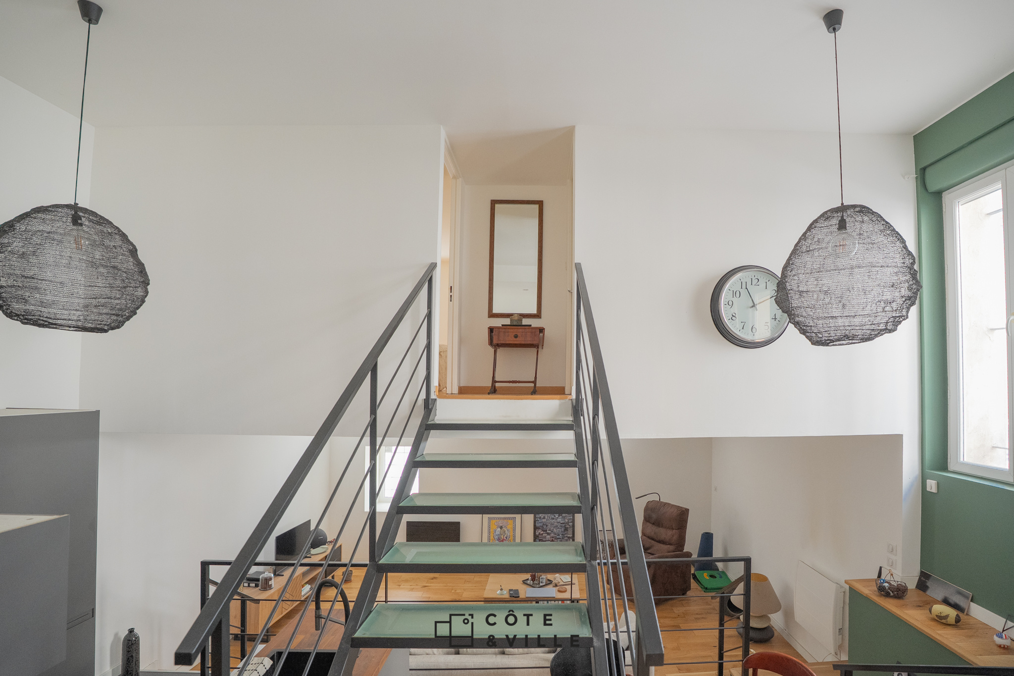 Un escalier dessert 2 chambres de 11m2. Appartement idéalement placé à proximité de toutes les commodités.