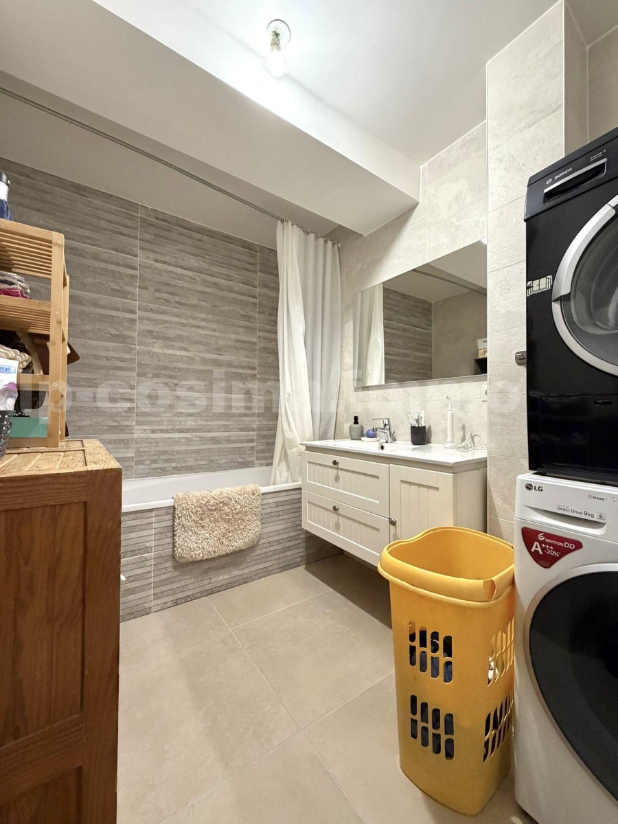 Un hall d'entrée spacieux avec un grand placard intégré, une cuisine ouverte sur séjour donnant accès au jardin clôturé expo: Sud/Ouest d'environ 50 m2. Trois chambres spacieuses baignant de lumière dont une ayant un accès à la terrasse. Une salle de bain avec un emplacement pour le lave-linge, ainsi qu'un WC séparé.