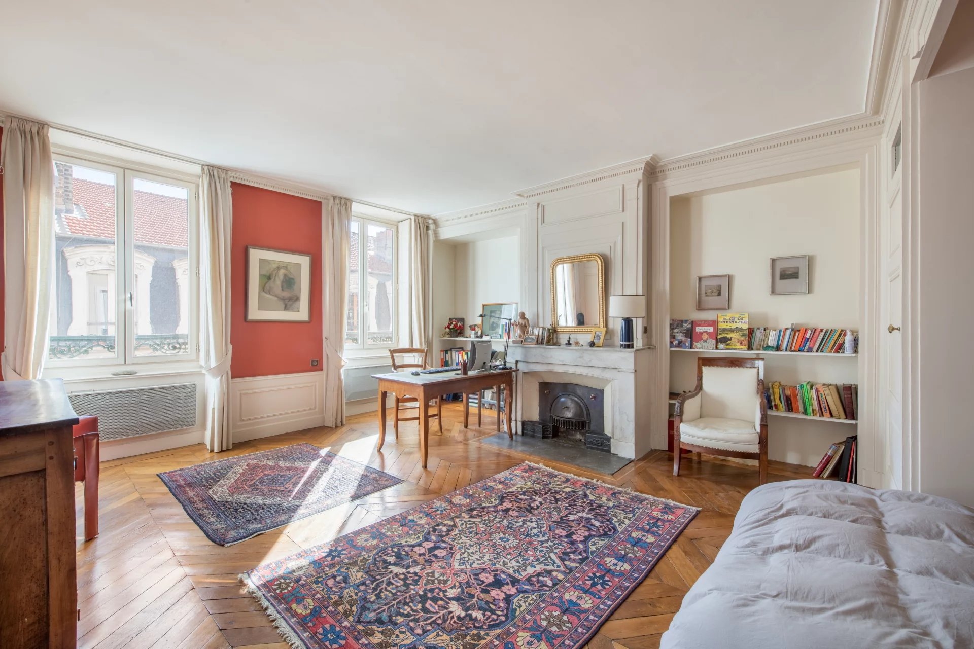 Dès l’entrée, le charme opère : belle luminosité grâce à son exposition Est, volumes généreux, parquet massif et cheminée décorative confèrent à ce bien une atmosphère chaleureuse et authentique. Le peu de vis-à-vis renforcent la sensation de calme et d’espace, en plein centre-ville.