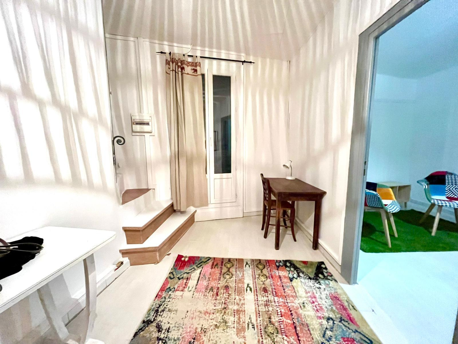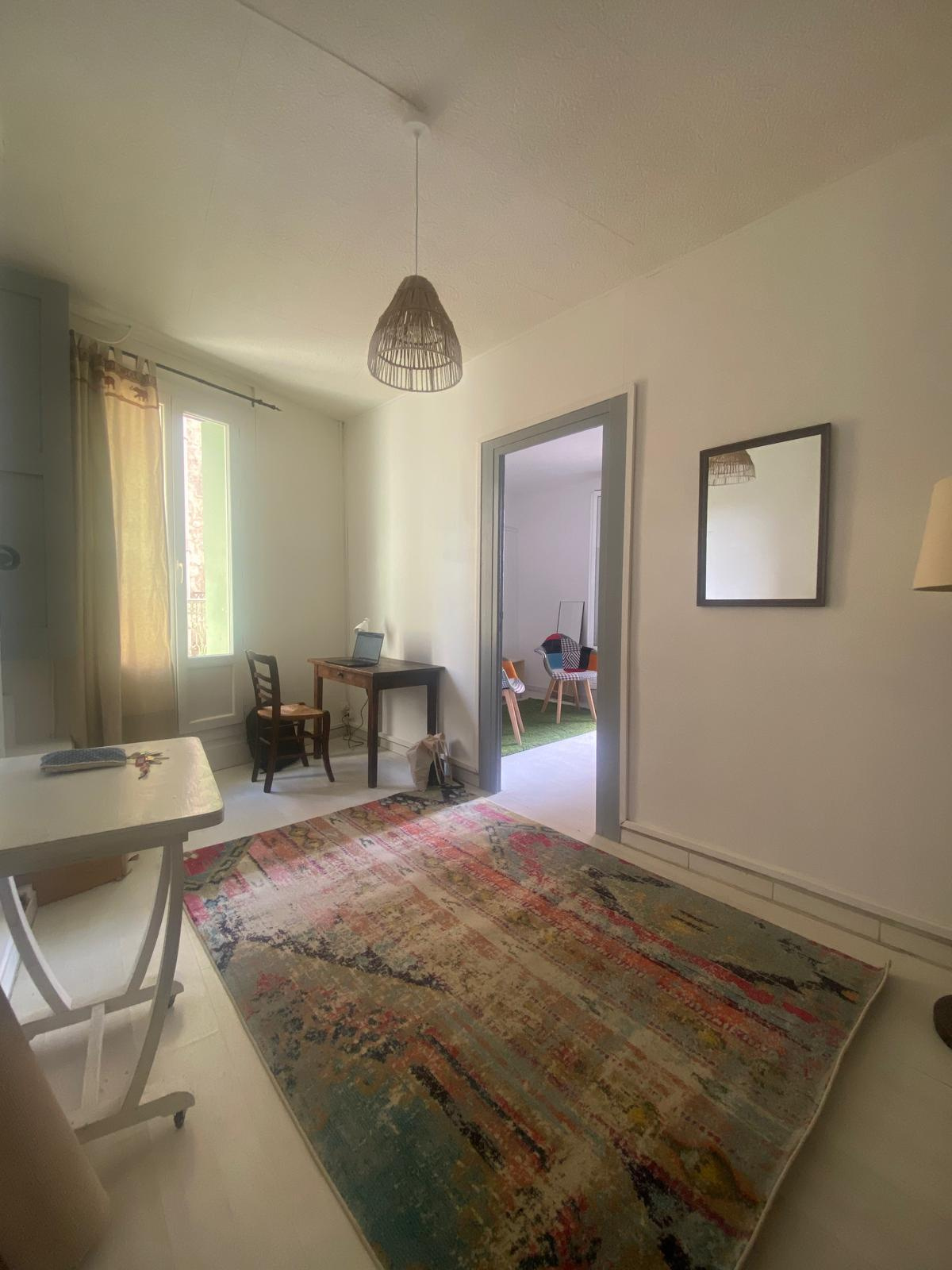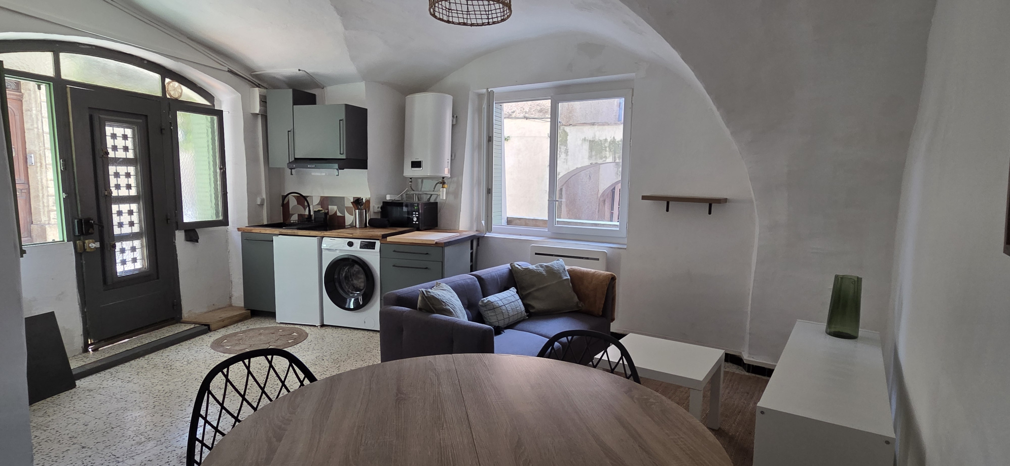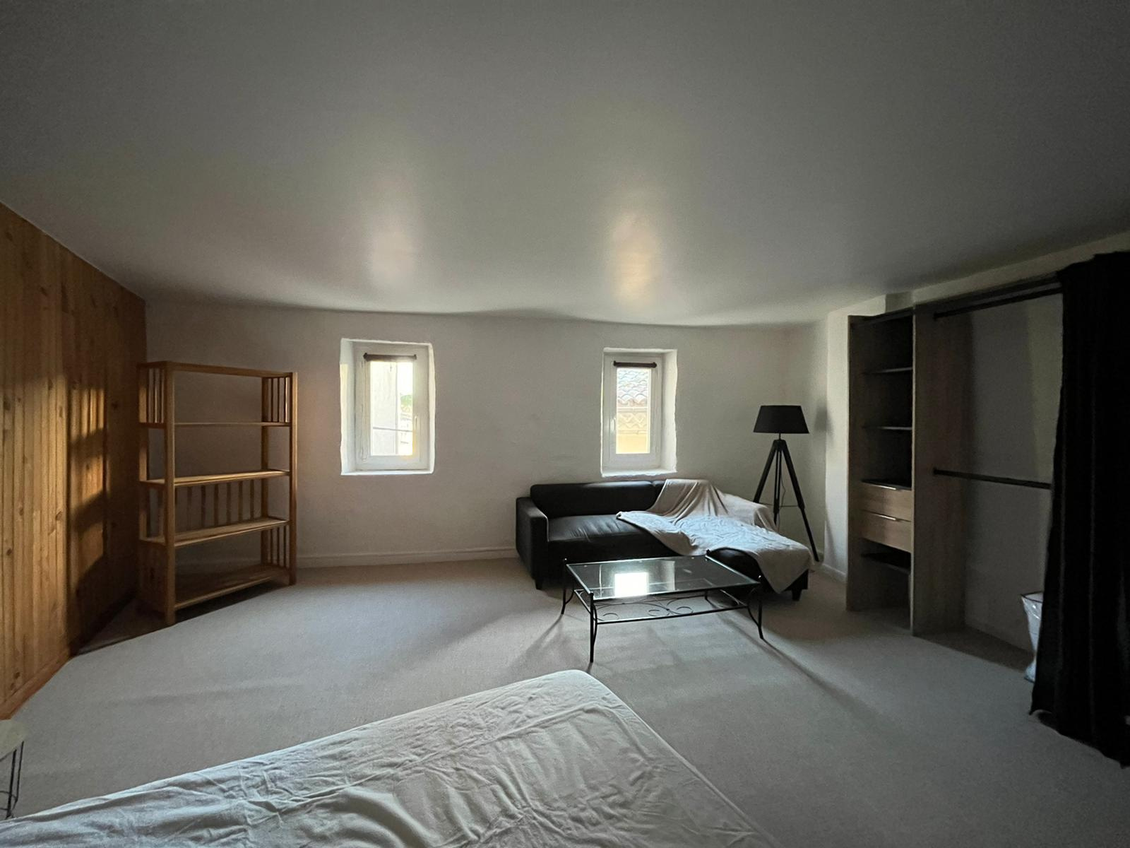 - Au RDC: D'un appartement de type T2 en bon état général de presque 40m2 avec une grande pièce principale voutée avec coin cuisine équipée, d'une chambre, d'une salle d'eau et d'un wc (loué en meublé 520 EUR + charges)
