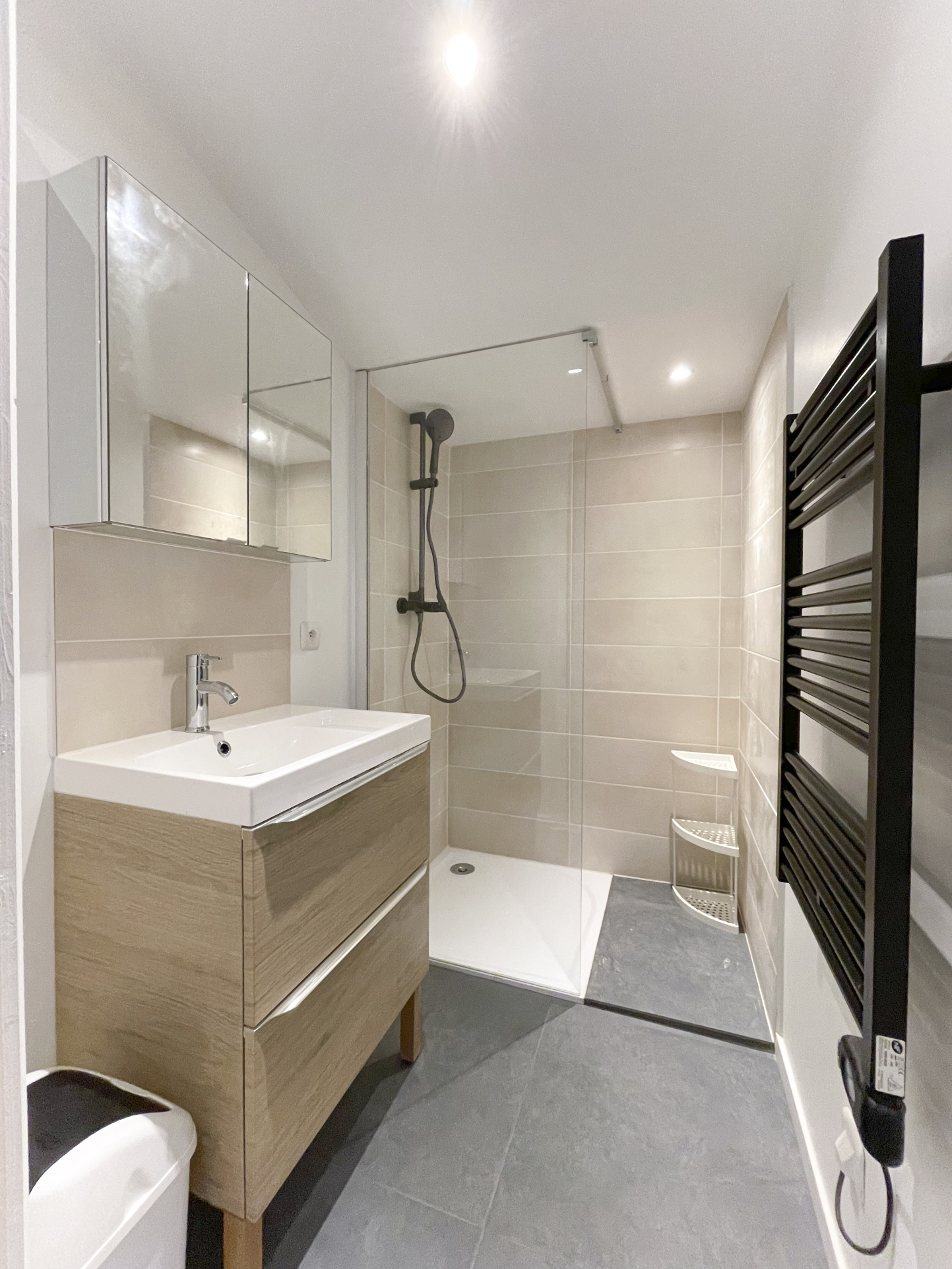 - Au 2nd étage; D'un appartement de type T2 duplex en très bon état général de 32m2 + partie mansardée avec une cuisine équipée et au dessus un salon, une salle d'eau et une chambre mansardée (loué 575 EUR + charges)