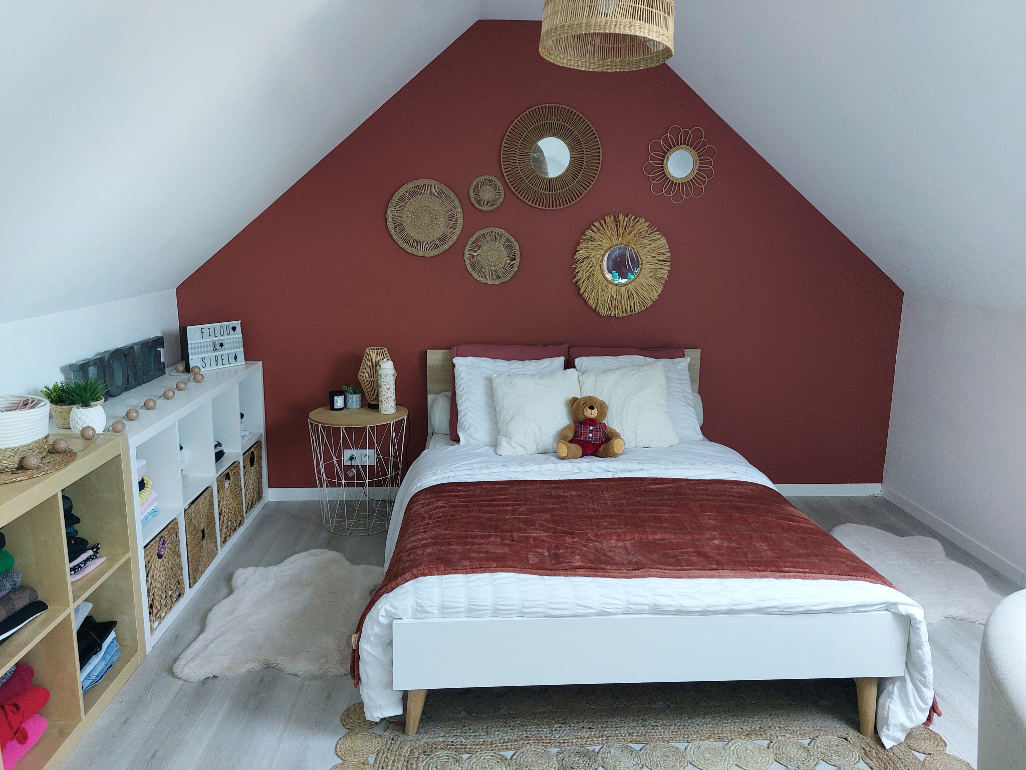 À l'étage, un palier dessert une chambre supplémentaire, idéale pour un bureau ou une chambre d'amis.