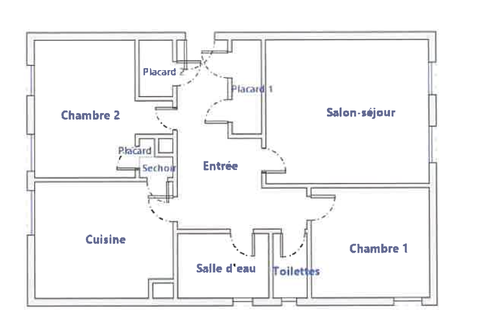 Appartement traversant de 58,28 m2 situé en rez-de-chaussée surélevé, à deux pas des bords de Vienne.