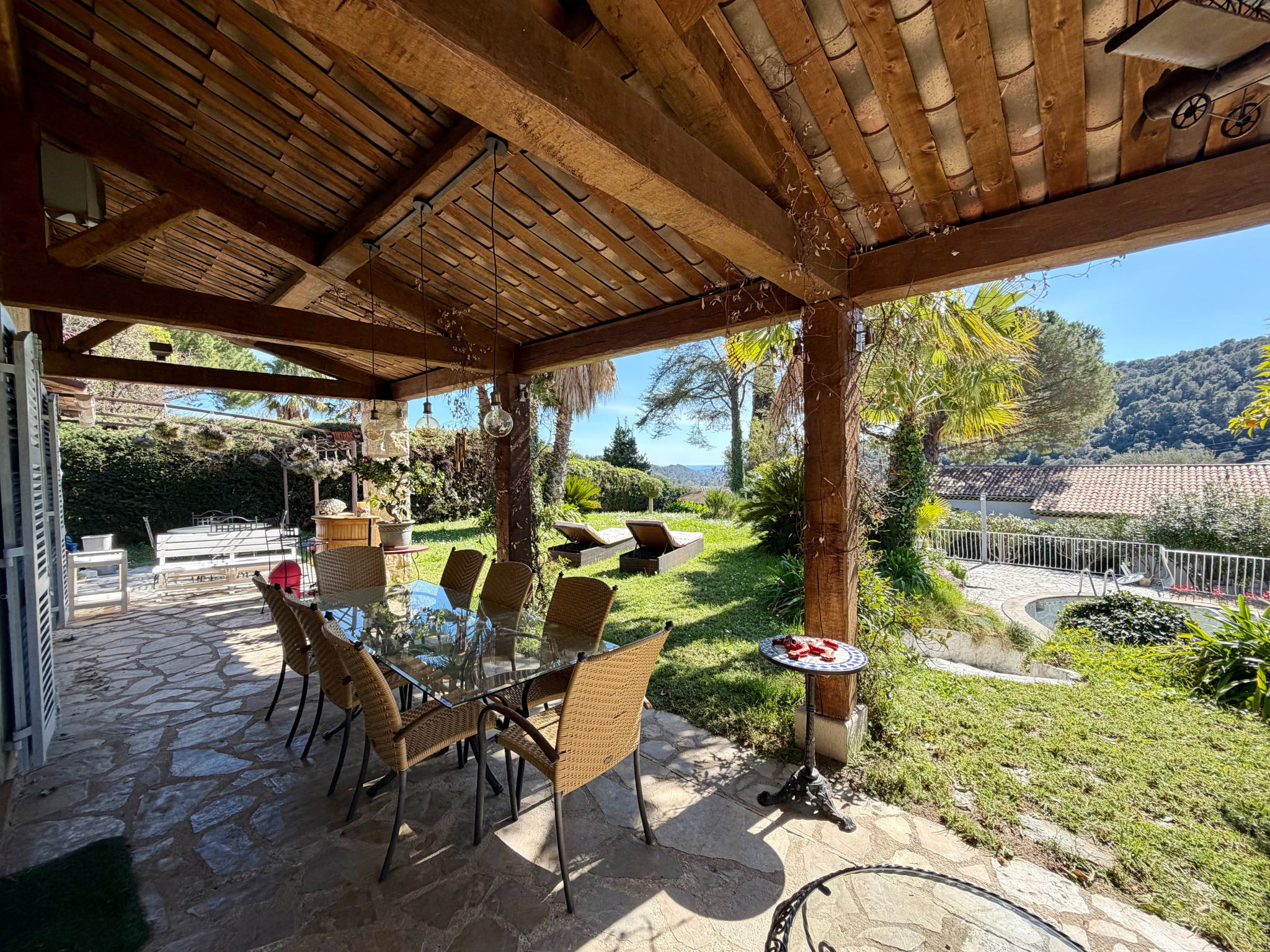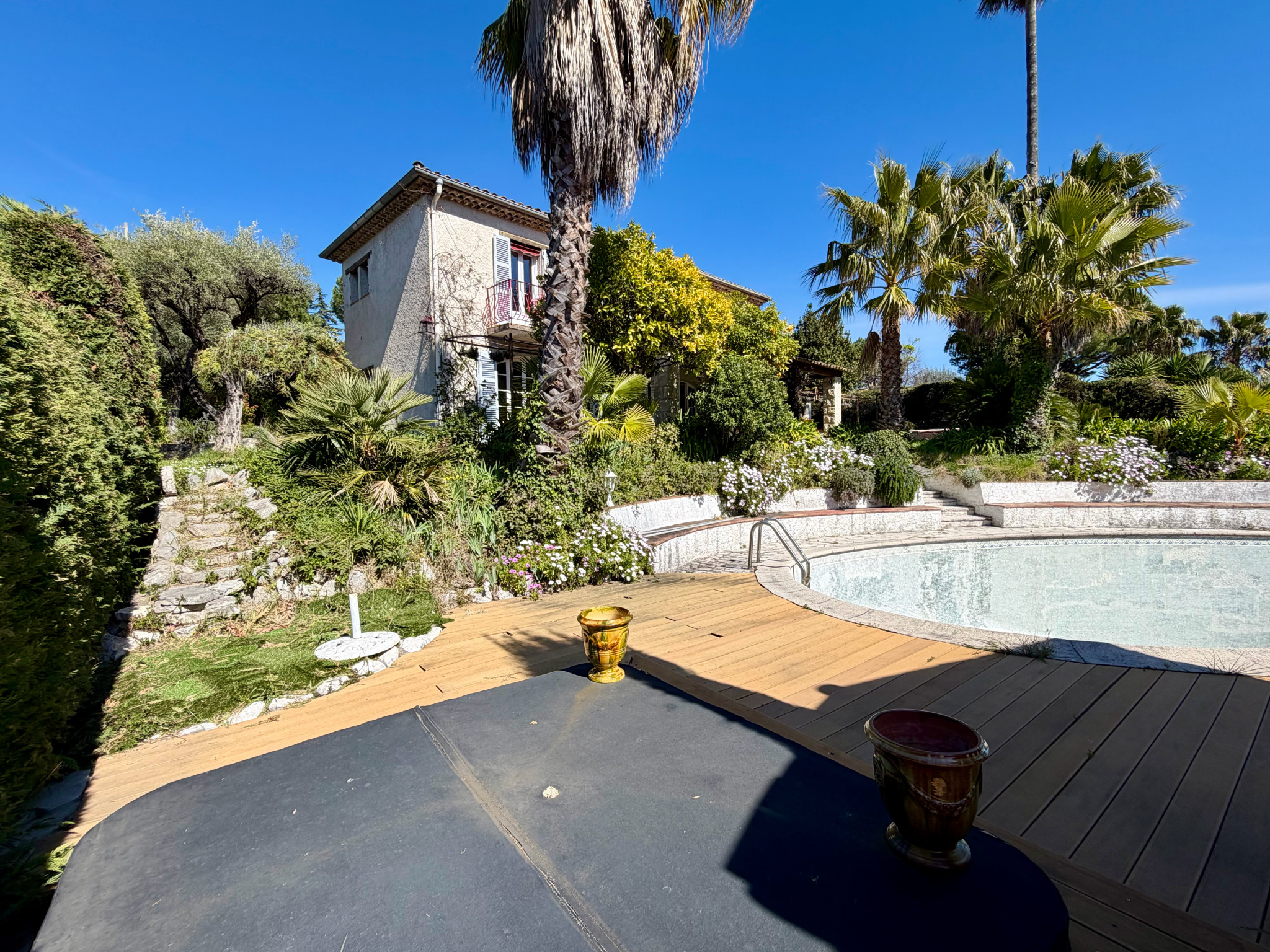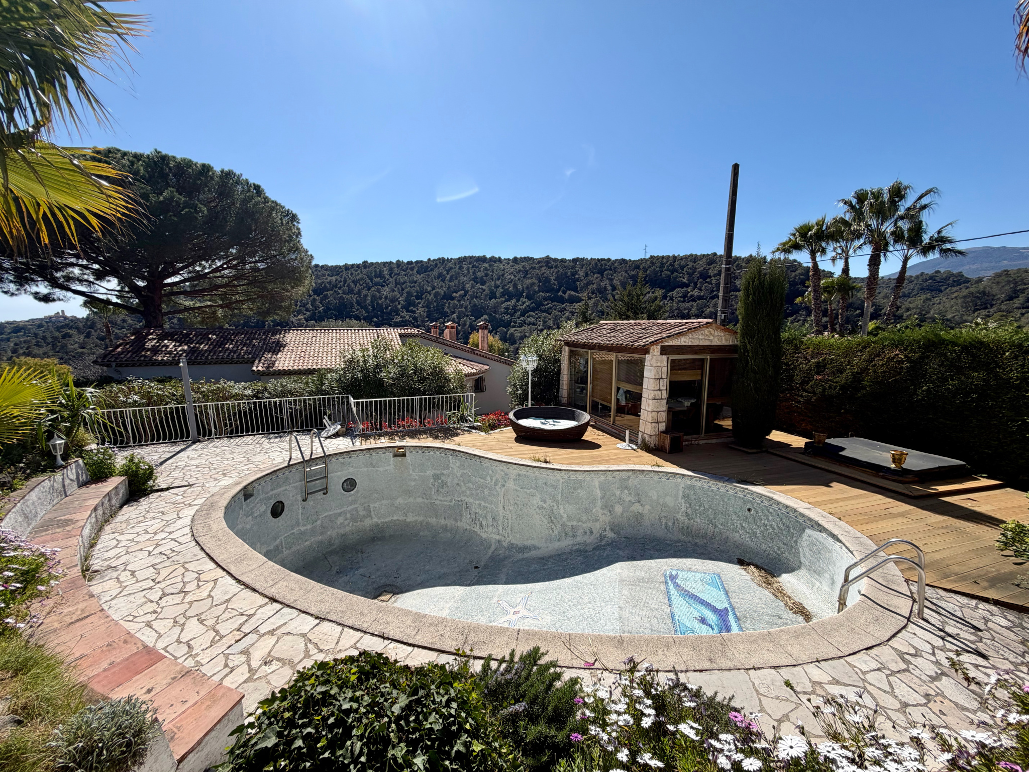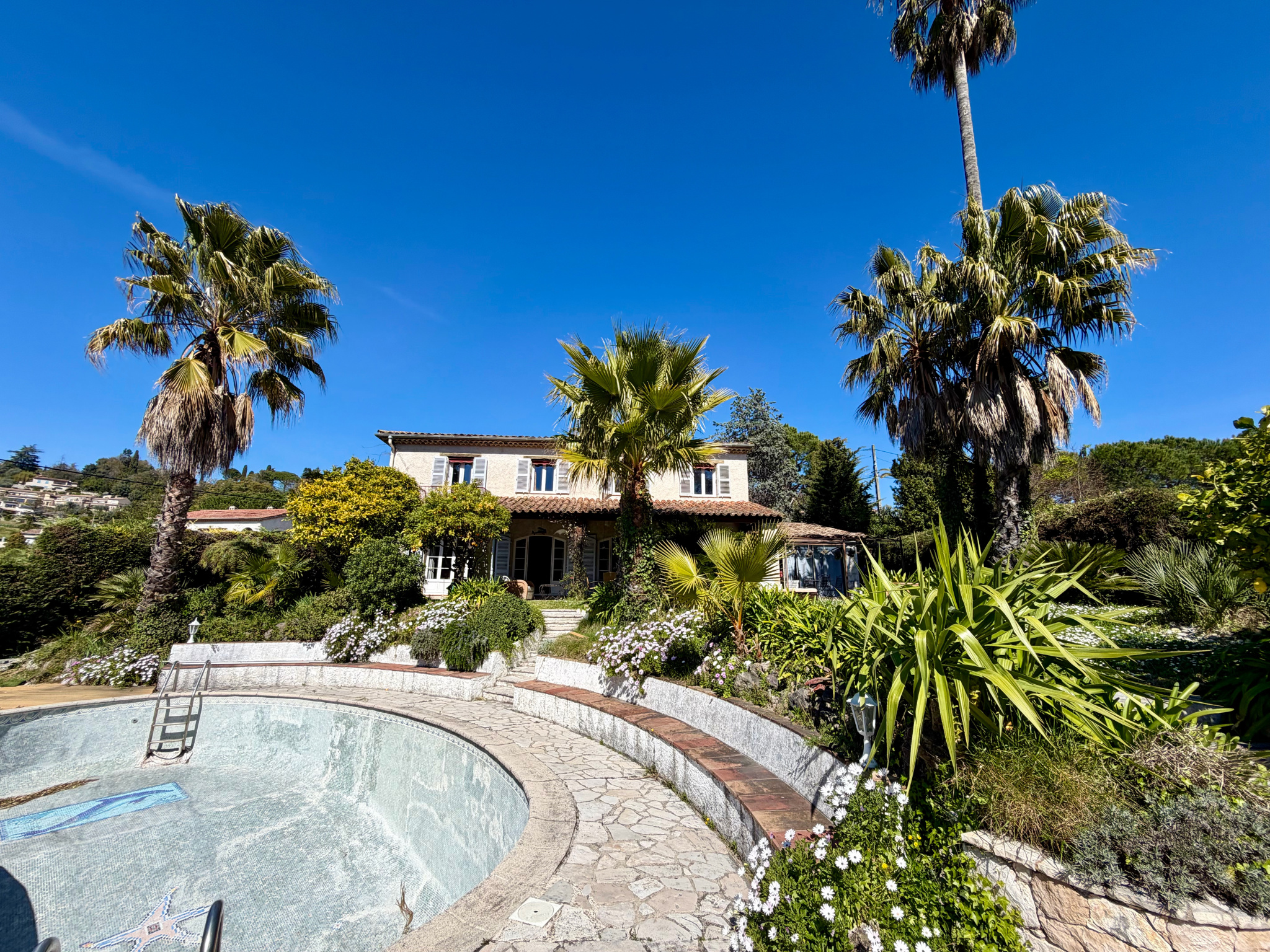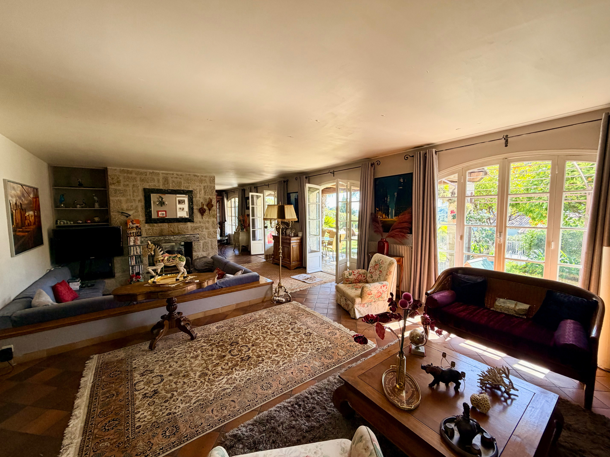 Idéalement située au sud de Vence, cette villa individuelle néo-provençale de 230 m2 habitables bénéficie d'une superbe vue dégagée jusqu'à Saint-Paul-de-Vence et le Cap d'Antibes, avec une exposition Sud/Ouest. Le niveau principal de plain-pied (env. 145 m2) offre un bel espace de vie lumineux avec séjour et cheminée, une salle à manger, ainsi qu'une cuisine indépendante. Toujours de plain-pied : 2 chambres, dont une avec salle d'eau, WC indépendant. À l'étage : 3 chambres, dont une formant une suite intégrant un espace bureau et une salle de bain, une seconde salle de bains et WC concluent ce niveau.