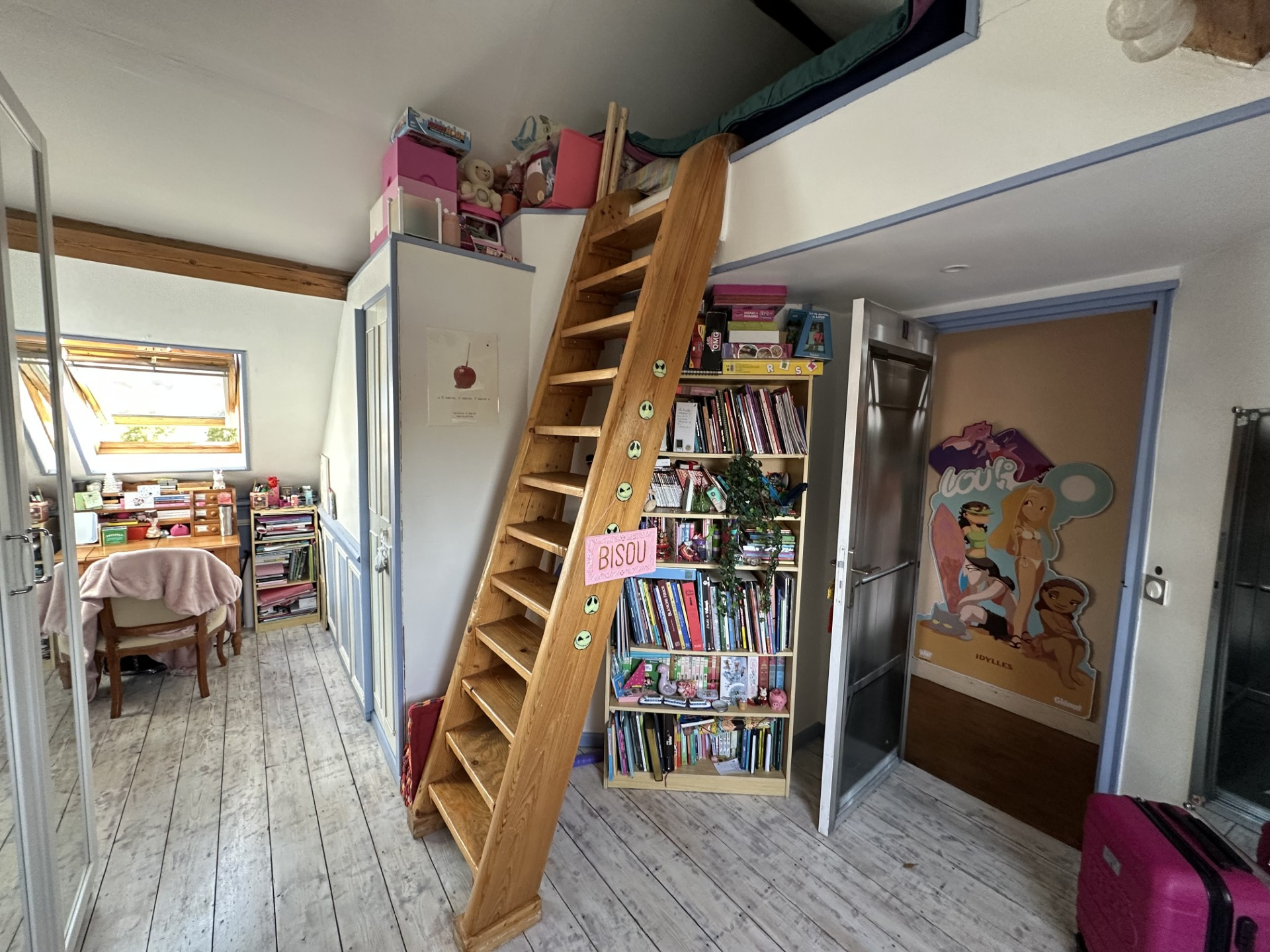 Au 2ème étage : Un palier desservant une chambre et un bureau.