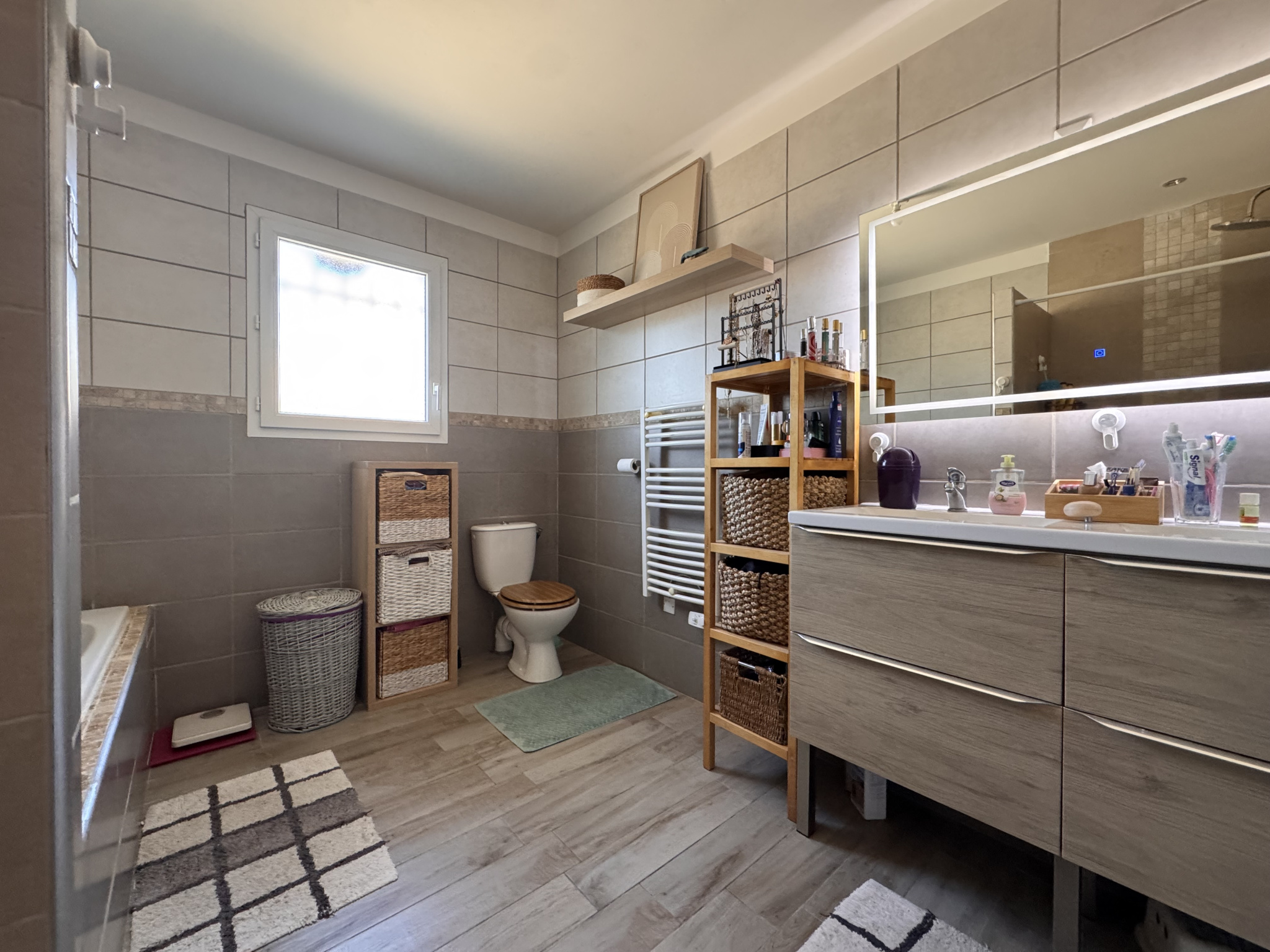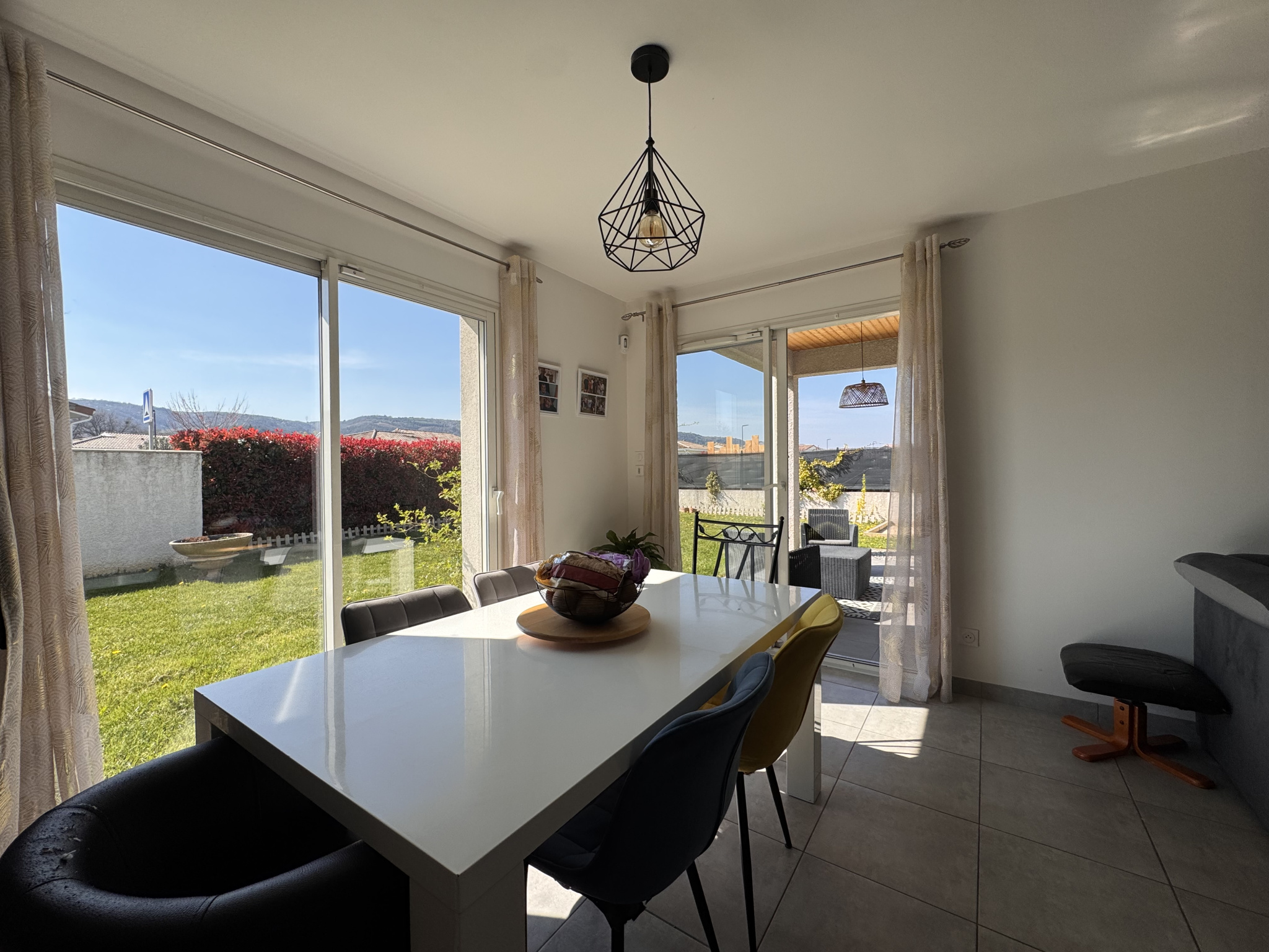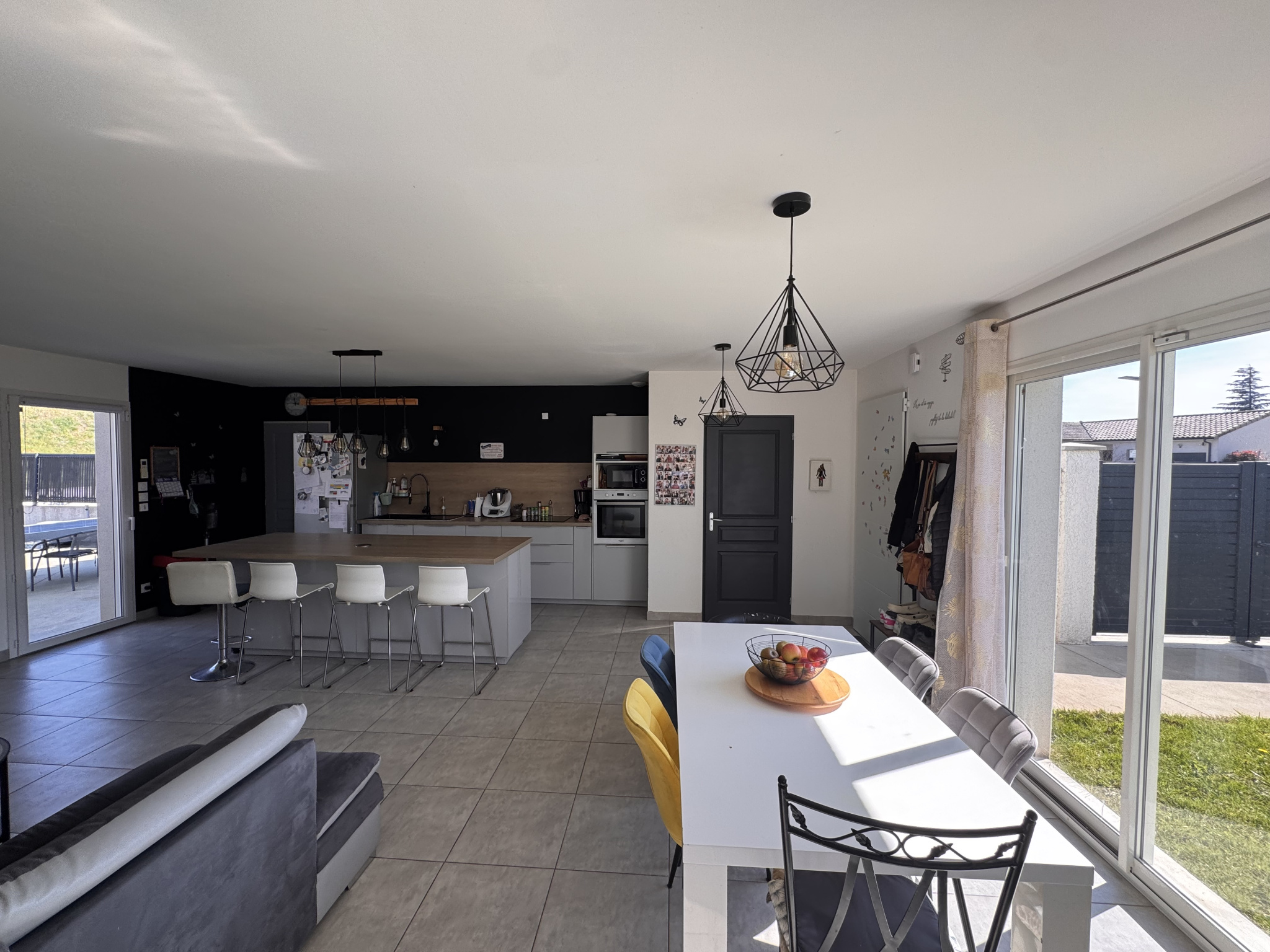 Dès l'entrée, la maison séduit par une belle pièce de vie de 41 m2, baignée de lumière grâce à sa triple exposition. La cuisine ouverte, entièrement équipée, crée un espace convivial et moderne. Une buanderie attenante avec accès direct au garage apporte un vrai confort au quotidien. L'ensemble s'ouvre sur le jardin, offrant une belle continuité intérieur / extérieur.