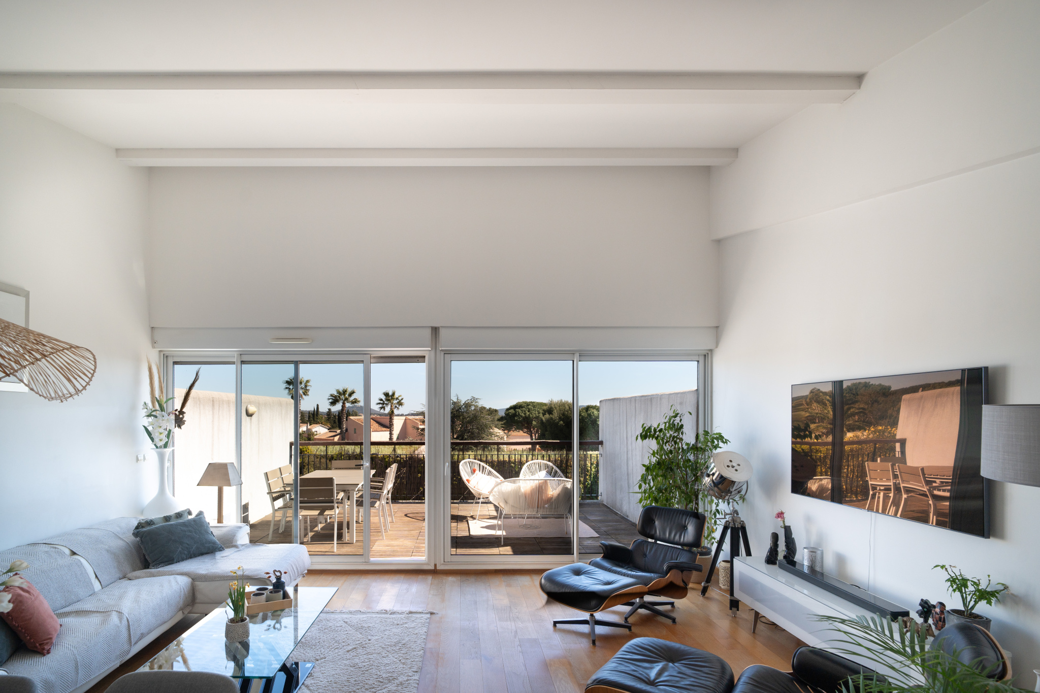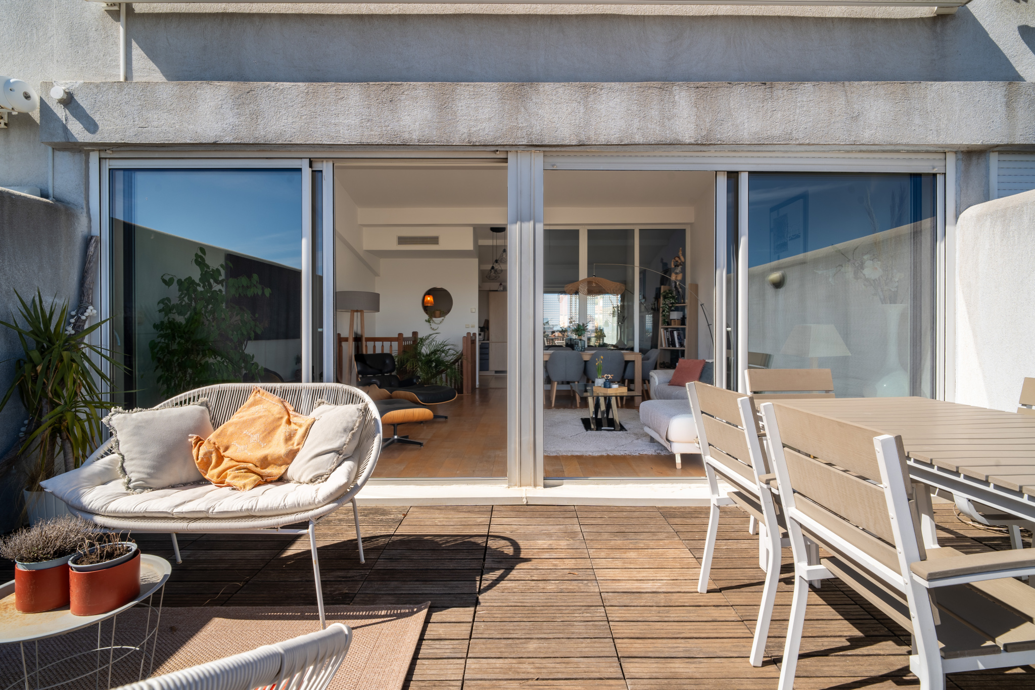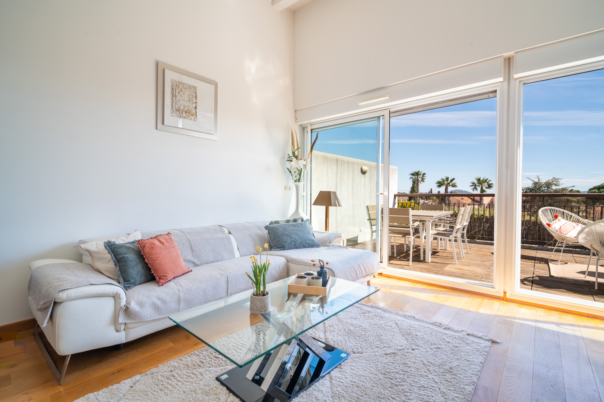 Signée par l'architecte de renom Rudy Ricciotti, cette copropriété confidentielle séduit immédiatement par son atmosphère singulière : une élégante allée généreusement fleurie, des façades travaillées dans les moindres détails, de délicates ferronneries, un agréable espace piscine et une véritable identité architecturale qui lui confère un charme rare. Découvrez cet appartement T3/4 en duplex de 83m2 au caractère unique. Il se distingue par une organisation inversée, pensée pour privilégier les vues et la lumière dans les espaces de vie. Dès l'entrée, le niveau principal accueille un hall, deux chambres avec placards ouvrant sur une terrasse de 42 m2, une salle de douche ainsi qu'un WC indépendant. À l'étage, le séjour cathédrale séduit par ses volumes et sa luminosité. Il s'ouvre par une large baie vitrée sur une terrasse de 22 m2, offrant une belle vue mer. La cuisine, semi-indépendante et entièrement équipée, complète cet espace convivial. Un jardin d'hiver prolonge le séjour et peut, selon les envies, être intégré afin d'en augmenter encore la superficie. Un garage et une cave sont disponibles en sus. A voir sans tarder!