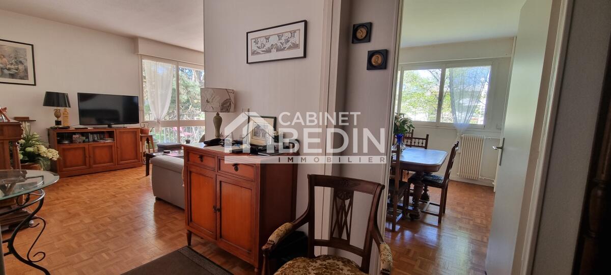 GRADIGNAN. Très agréable appartement T3 dans une résidence bien entretenue, il se compose d'un séjour double et deux chambres, une salle de bains, une salle d'eau, des rangements. Bien exposé il est lumineux et le balcon offre une vue sur le parc arboré tranquille et calme. Votre véhicule sera au parking en sous sol et vos vélos, bagages et autres dans une grande cave facile d?accès. Les commerces, écoles, marché sont à proximité. . Les informations sur les risques auxquels ce bien est exposé sont disponibles sur le site Géorisques : www. georisques. gouv. fr. Montant estimé des dépenses annuelles d?énergie pour un usage standard : entre 1650 et 2270 Euros/an (année de référence 2022) Bien en copropriété de 424 lots dont 115 lots principaux , Charges annuelles 4400. 00 Euros