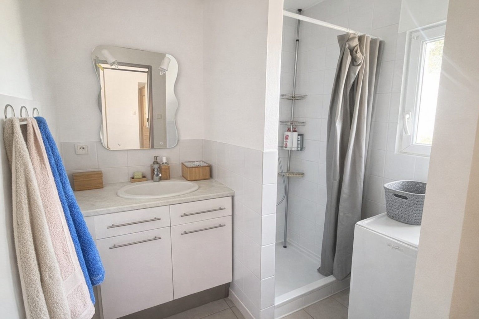 Dans petit immeuble de 2 lots, au centre du village, appartement de 43m² , loué 480 euro/mois, comprenant cuisine équipée ouverte sur séjour, une chambre, WC, salle de bains.