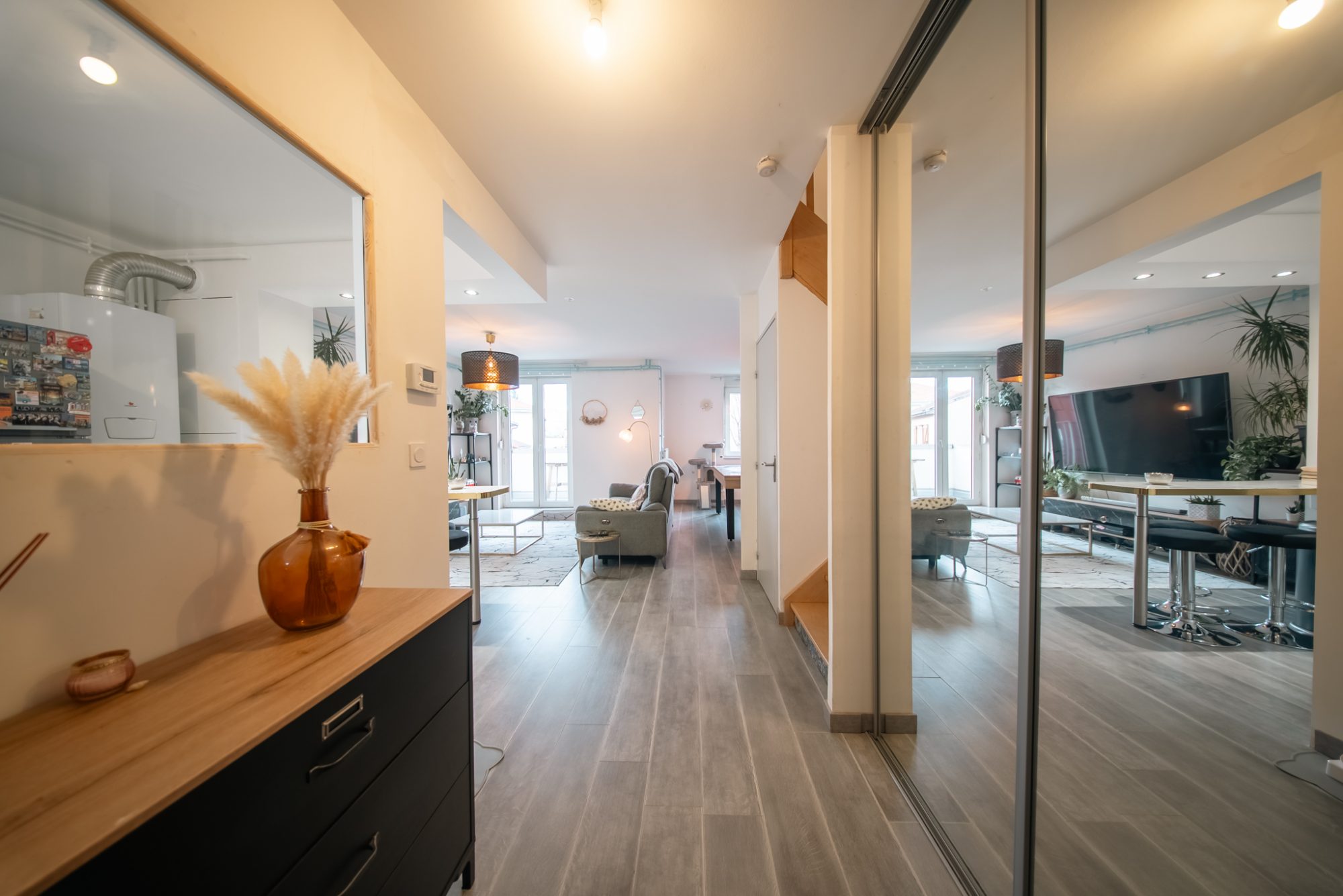 À l'étage supérieur, vous profiterez d'un balcon de 3 m², parfait pour les petits-déjeuners ensoleillés ou les soirées d'été. La vue sur la cour apporte une touche de tranquillité à votre quotidien.