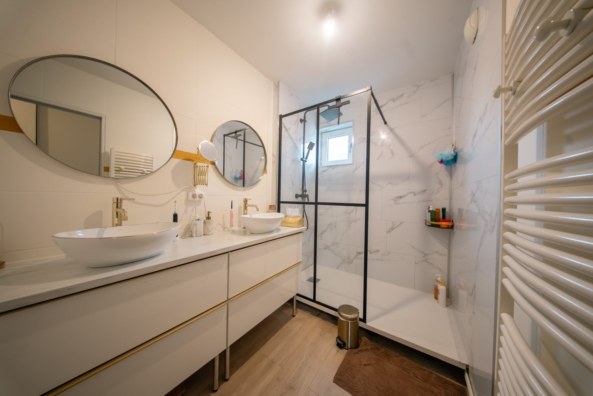 Au premier étage, vous serez séduit par le séjour de 21 m² baigné de lumière grâce à ses grandes ouvertures en PVC à double vitrage. La cuisine aménagée et équipée, de type coin cuisine, est idéale pour les repas en famille ou entre amis. Les trois chambres, spacieuses et lumineuses, vous offriront des nuits paisibles. La salle d'eau, moderne et pratique, ainsi que le WC indépendant, complètent parfaitement cet étage.