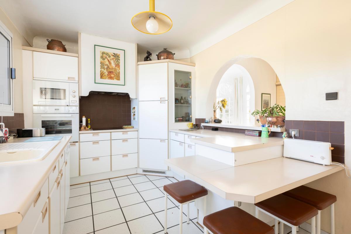 Dès l'entrée, vous découvrez un espace accueillant et lumineux qui dessert une cuisine semi-ouverte, ainsi qu'un bel ensemble salon salle à manger offrant de beaux volumes et une agréable clarté tout au long de la journée. Deux espaces bureaux viennent compléter cette pièce de vie, idéals pour le télétravail ou des activités polyvalentes.