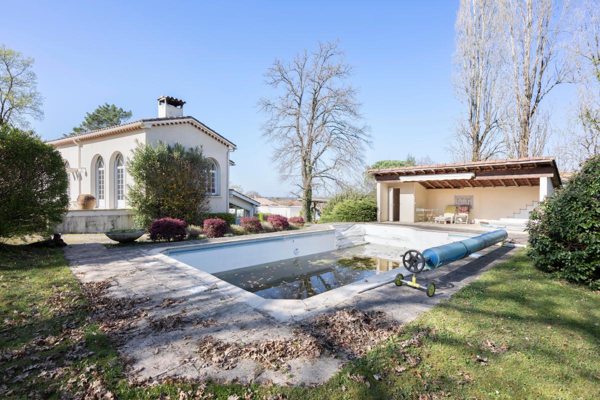 À l'extérieur, vous profitez d'un terrain entièrement clos d'environ 3 300 m², un véritable atout sur le secteur, offrant de nombreuses possibilités d'aménagement. Une piscine est également présente et nécessitera une réhabilitation, mais le bâti existant constitue déjà une base intéressante.