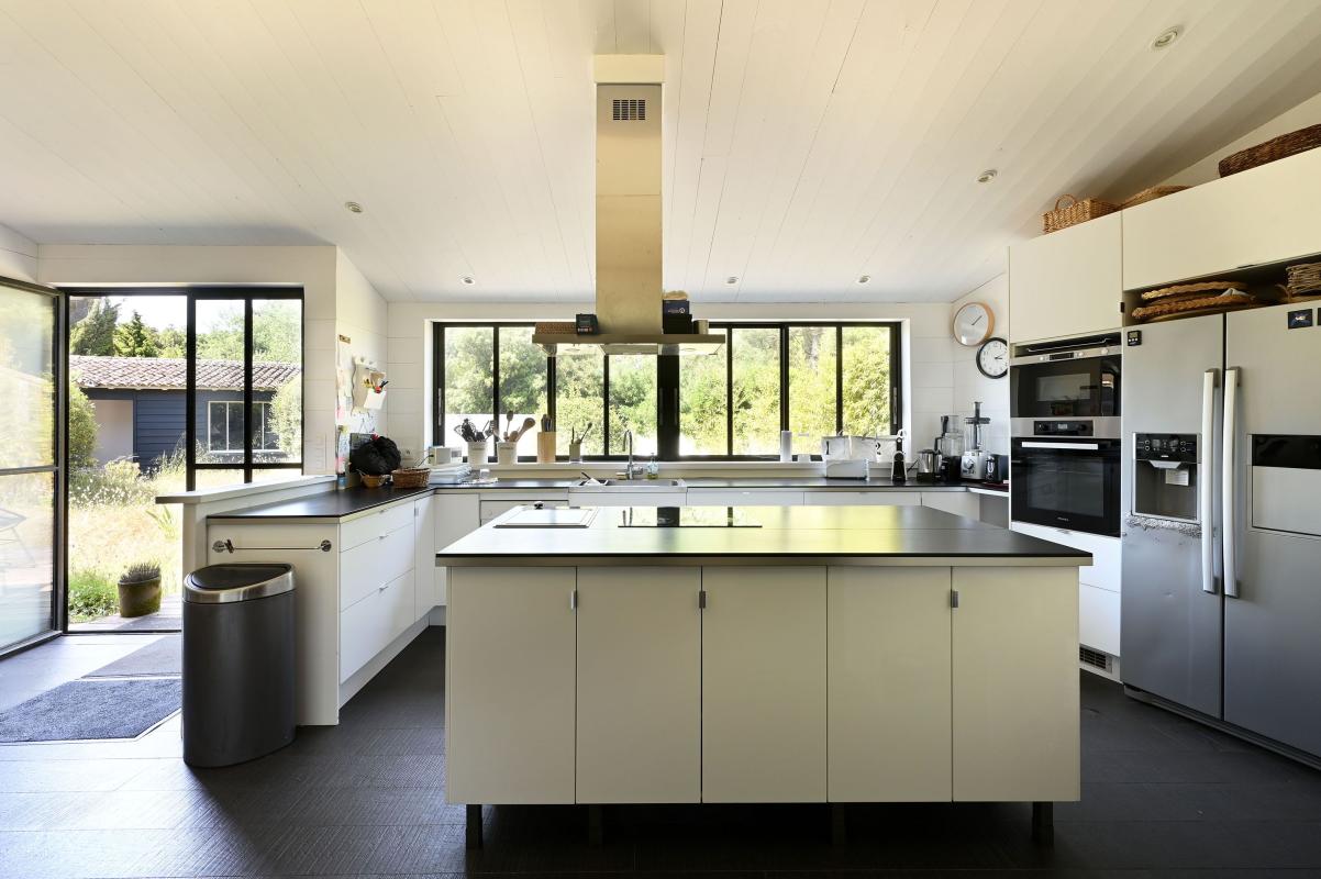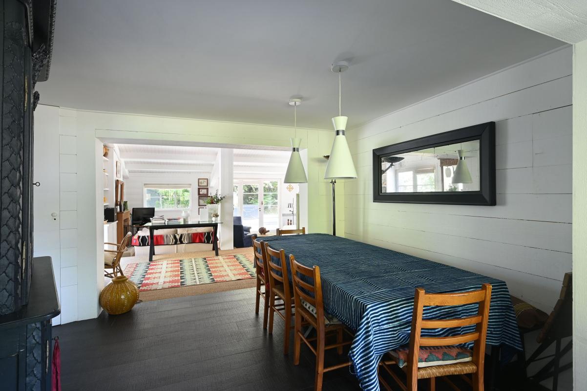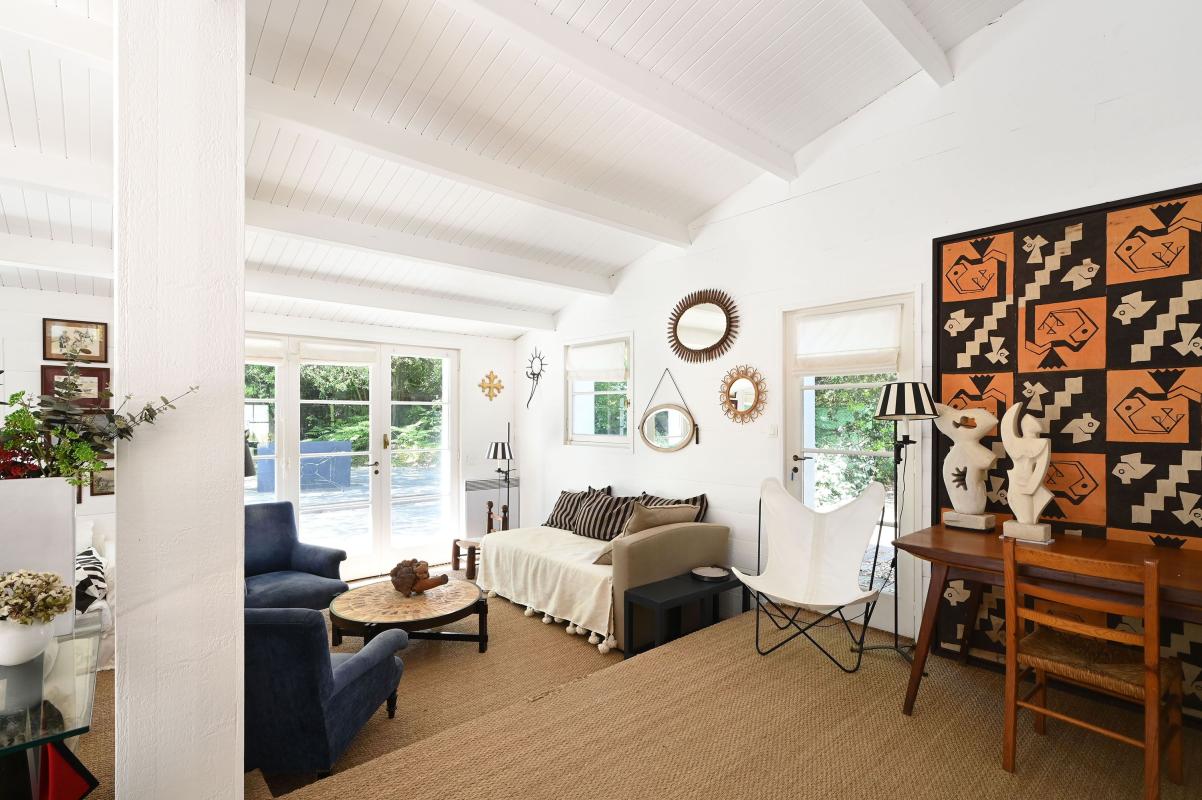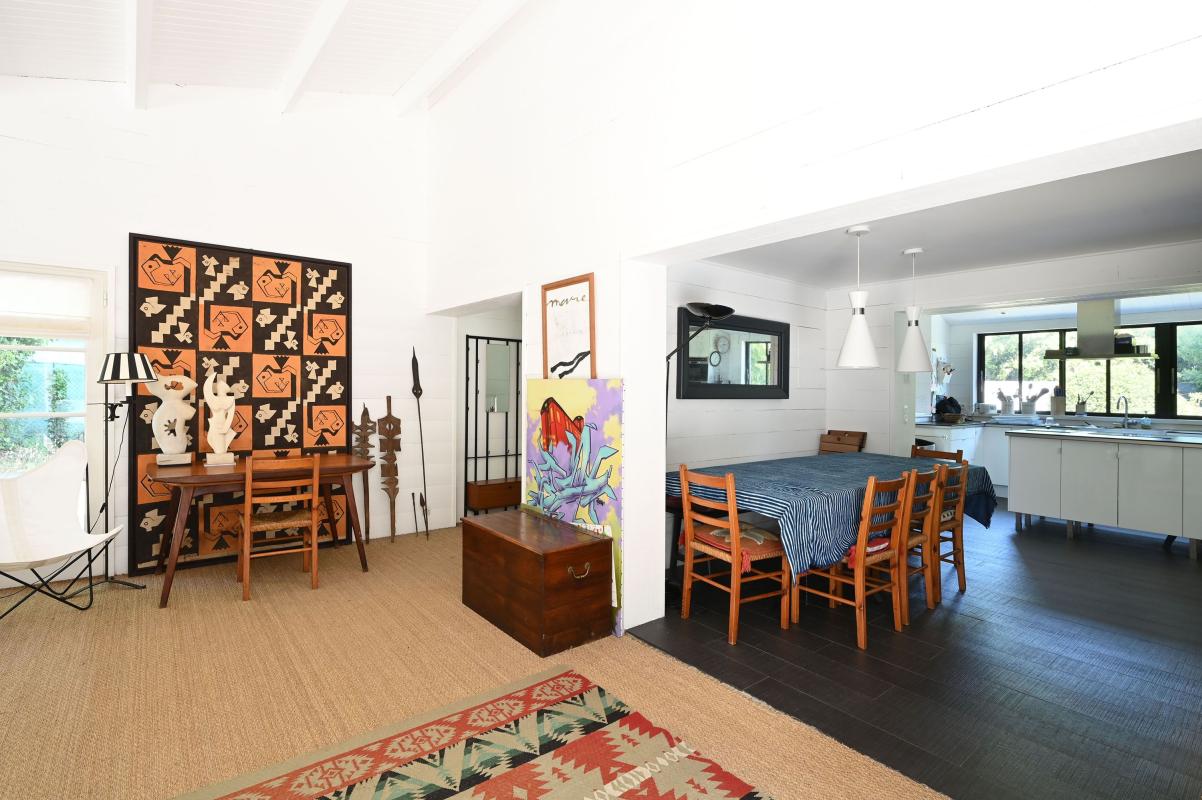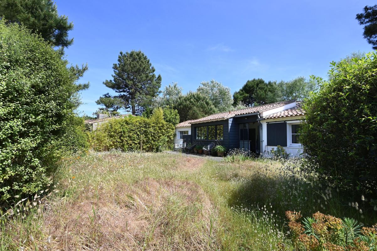 Immobilier Ile de Ré - Les Portes en Ré - Idéalement située à proximité des courts de tennis de la Filatte, cette propriété de 5 chambres se développe sur un terrain arboré de plus de 1 300 m², exposé plein sud. Elle offre un cadre calme, sans vis-à-vis et sans mitoyenneté. La maison principale propose une belle pièce de vie lumineuse avec cuisine semi-ouverte, ainsi que trois chambres, chacune avec sa salle d'eau. Une annexe indépendante accueille deux chambres supplémentaires, idéale pour recevoir enfants, famille ou invités en toute autonomie. Un garage de 35 m² et plusieurs places de stationnement complètent l'ensemble. Le jardin est piscinable.
