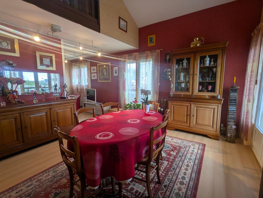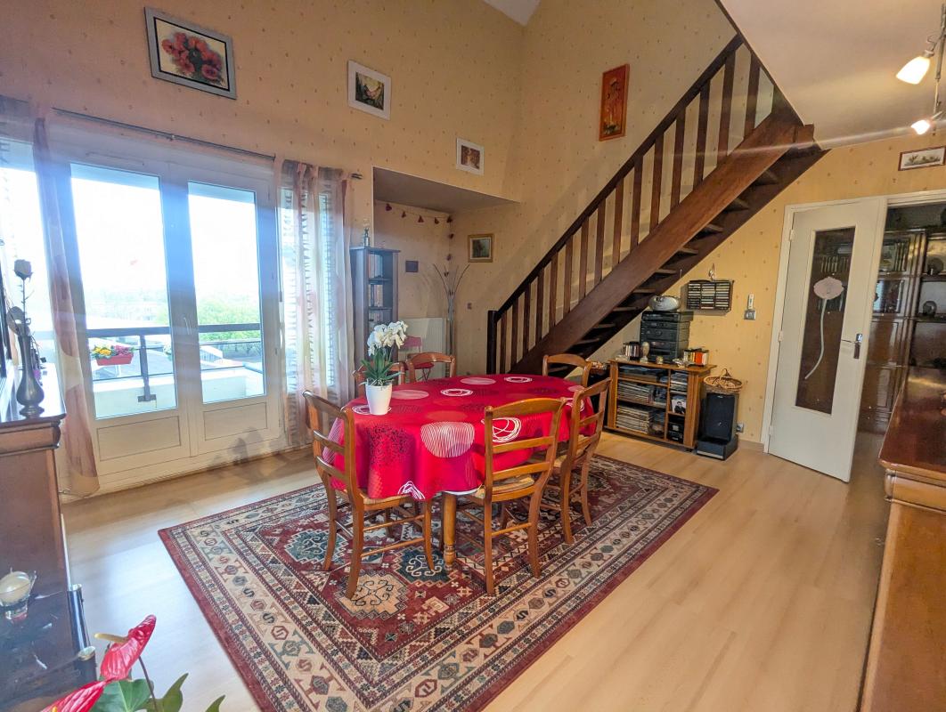 CAEN RIVE GAUCHE - dans une résidence de standing, grand duplex de 133m² avec vue dégagée comprenant : une entrée avec rangements, séjour double lumineux avec loggia, cuisine aménagée et équipée récente, 2 chambres de 15m², salle d'eau, WC, au 2nd niveau et avec accès indépendant possible : une mezzanine desservant 2 chambres, salle de bain récente et WC.