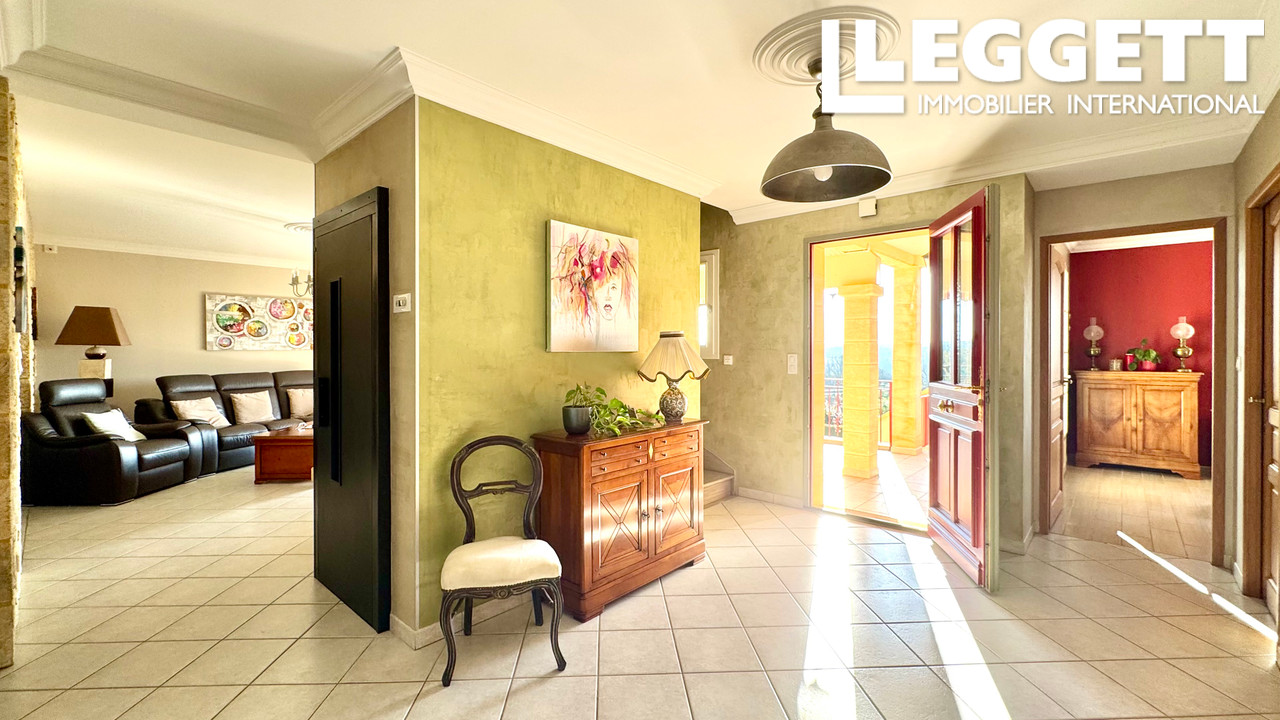 Le vaste espace de réception, lumineux et traversant, donne accès à 2 terrasses couvertes et est desservi par un ascenseur depuis le garage.