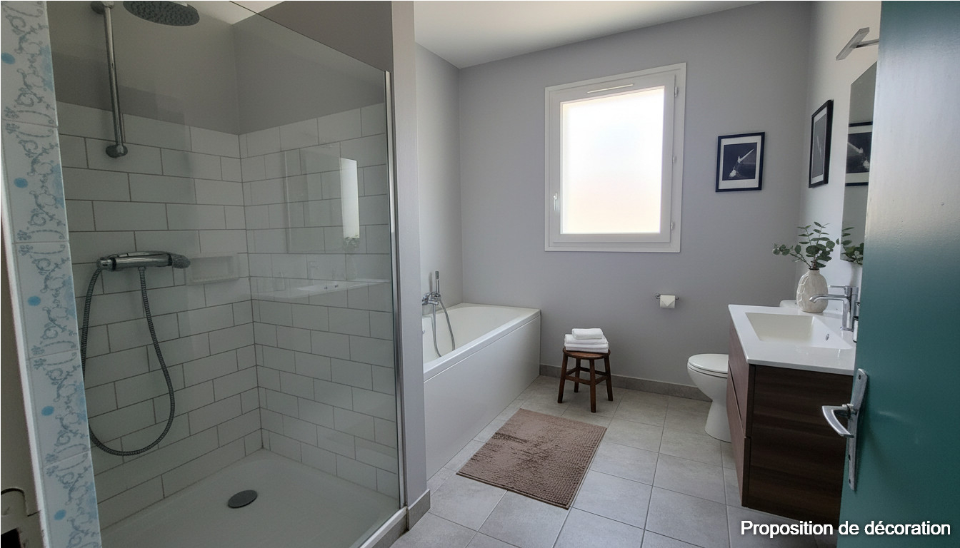 - Une salle d'eau avec baignoire.