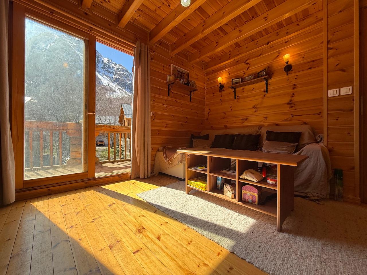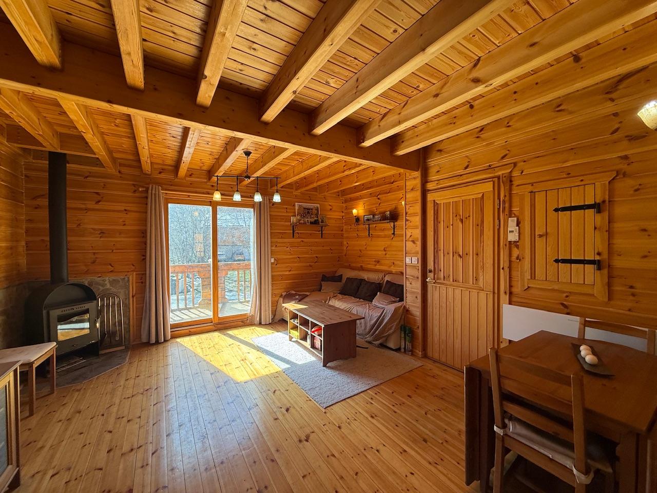 L'HOSPITALET-PRÈS-L'ANDORRE, Situé à 10 km du Pas de la Case (station Grandvalira) et 17 km d'Ax 3 Domaines, T3 de 80 m² (31.5 m² de garage et 45 m² loi Carrez). Lumineux et cosy, appartement au sein d'un chalet de 2 lots principaux, comprenant au rdc garage, au 1er étage salon avec insert à bois, cuisine ouverte avec placards, au 2ème étage 2 chambres avec rangement et salle d'eau-wc. Vendu meublé, exposition Sud-Ouest, au pied des plus belles randonnées locales, ardoise en toiture, sous bassement en pierre et charme du bois à l'intérieur. À prévoir : vitrage cheminée cassé, lasure ext. et quelques barreaux garde-corps manquants. Honoraires à la charge du vendeur. Montant estimé des dépenses annuelles d'énergie pour un usage standard : entre 1 090 et 1 530 euros. Prix moyens des énergies indexés en 2022.