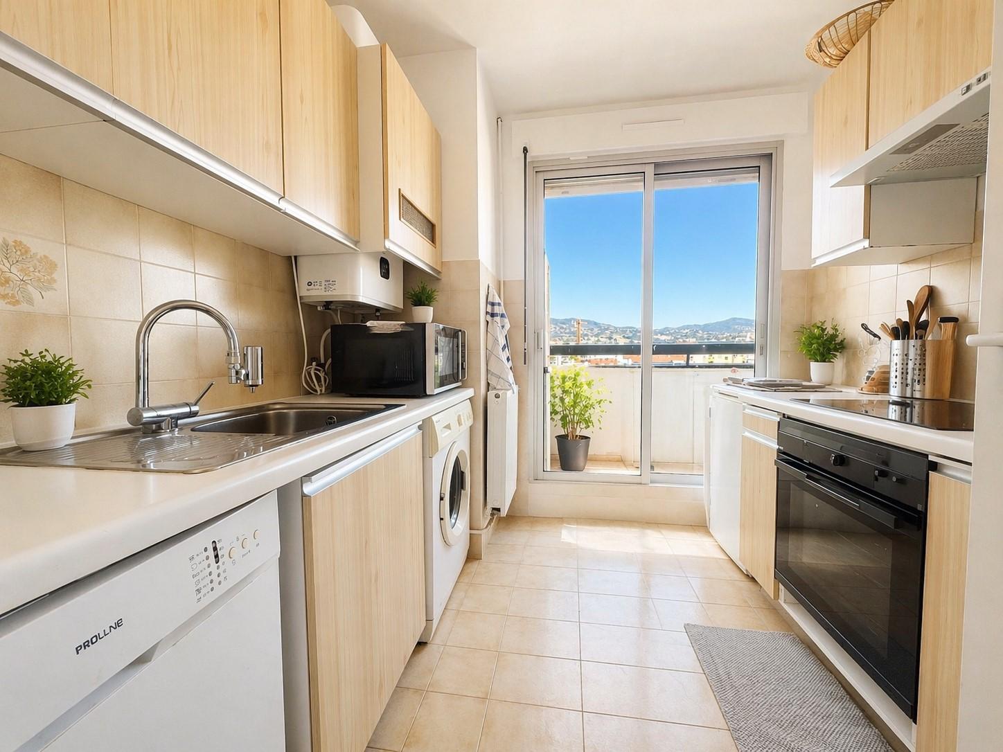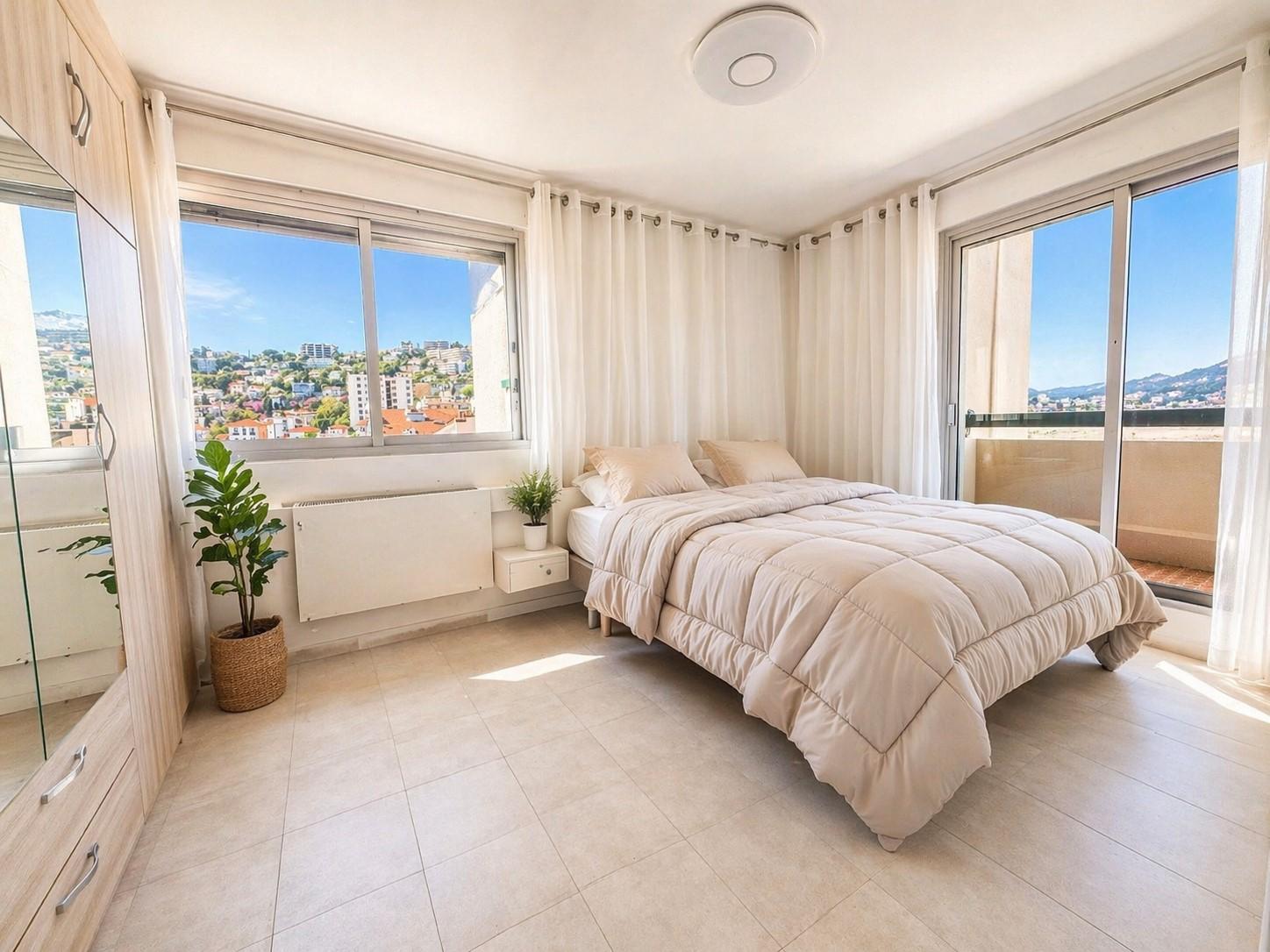 Au niveau des extérieurs, un balcon de 5m² et une véritable terrasse de 22m² disposant d'une vue panoramique sur la ville de Nice.