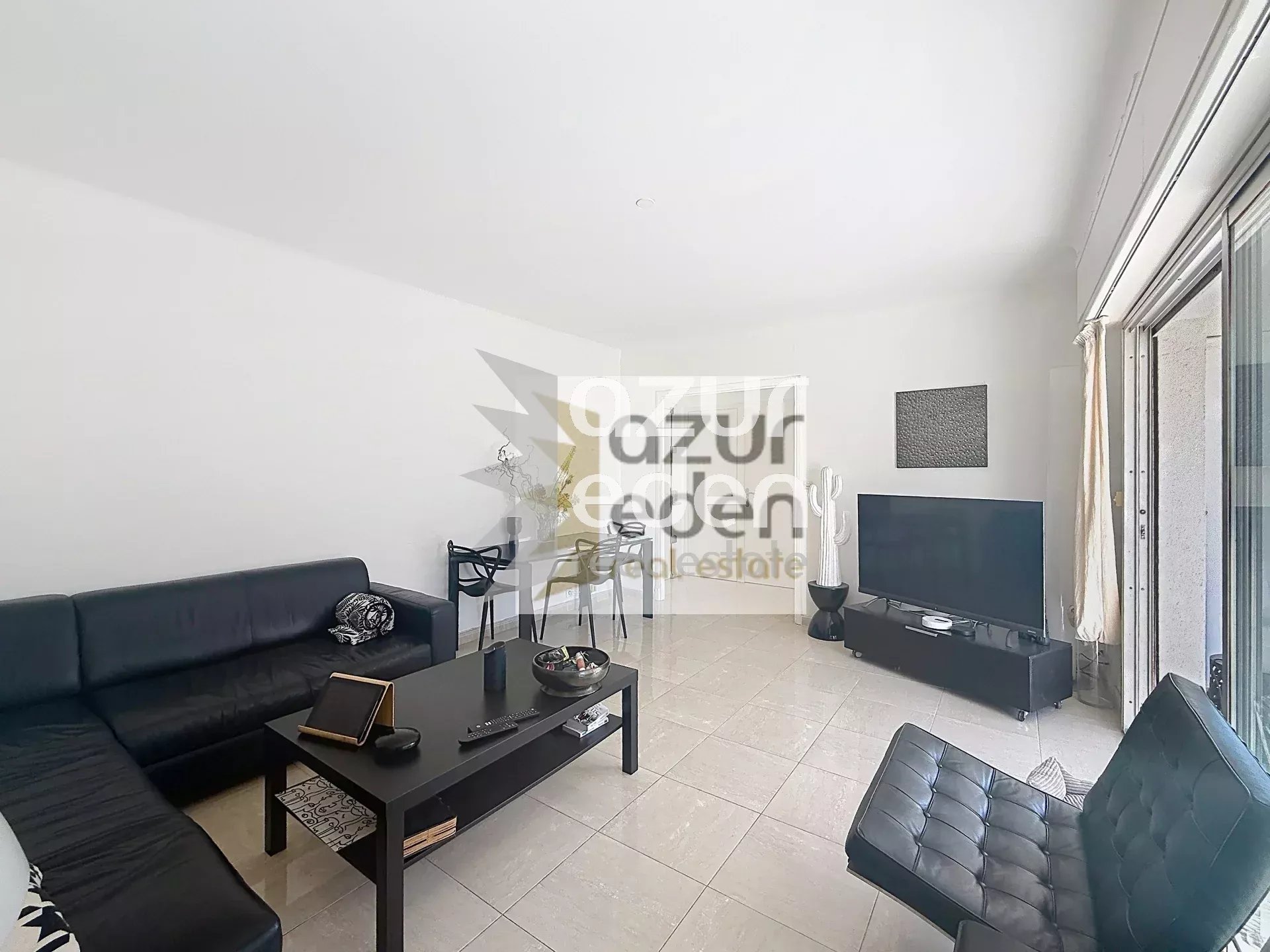 A vendre : En plein coeur du quartier du Palm Beach, à l'arrière de la Croisette, 2 pièces de 52 m2 en parfait état, vaste séjour lumineux, grande chambre avec dressing, cuisine indépendante, salle d'eau, parking collectif privatisé, à proximité de Bijou plage et de la place de l'Etang.