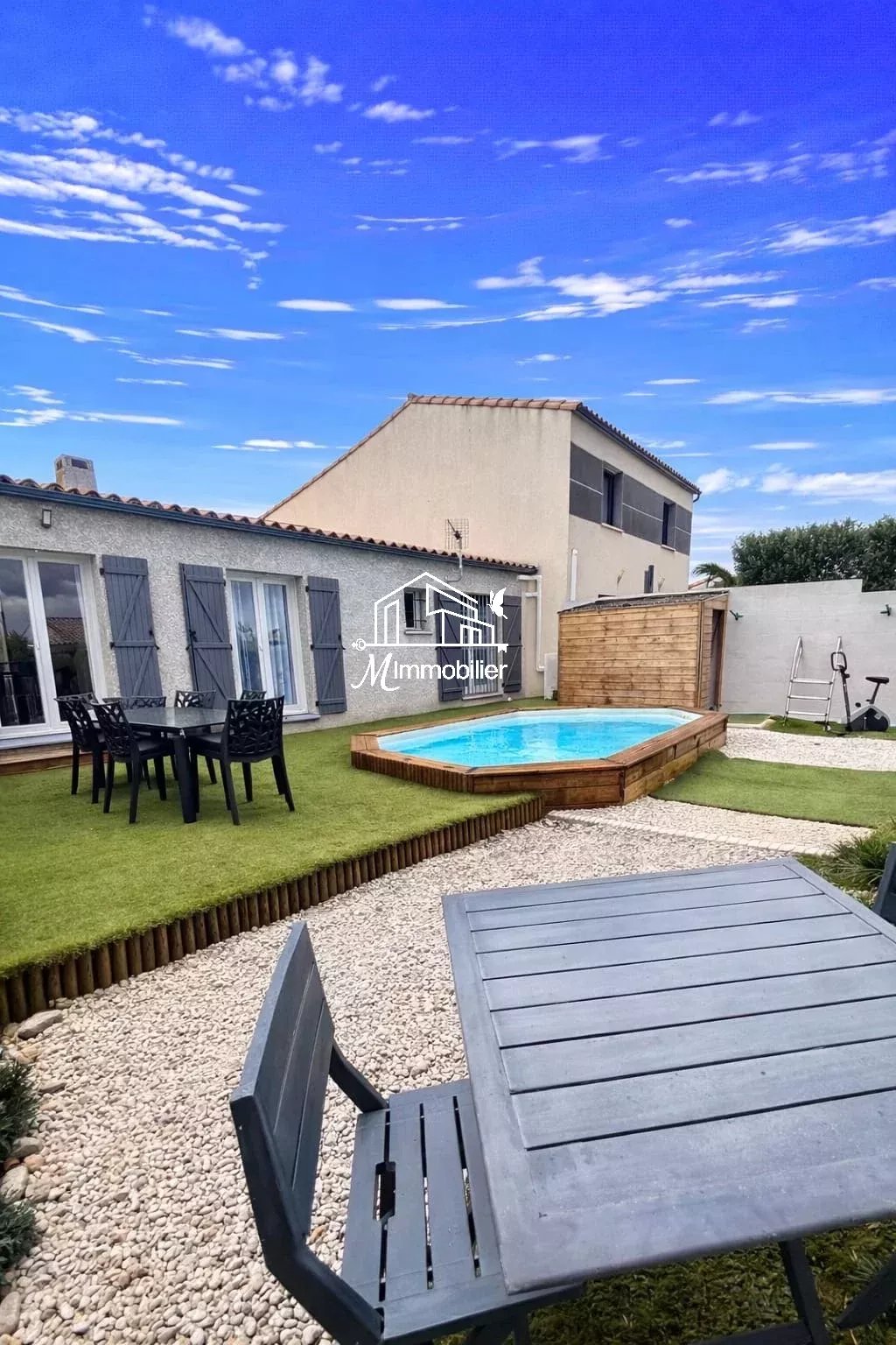 Le jardin propose un cadre agréable et soigné avec une piscine, une terrasse et un espace détente idéal pour recevoir famille et amis dans une ambiance conviviale et intimiste.