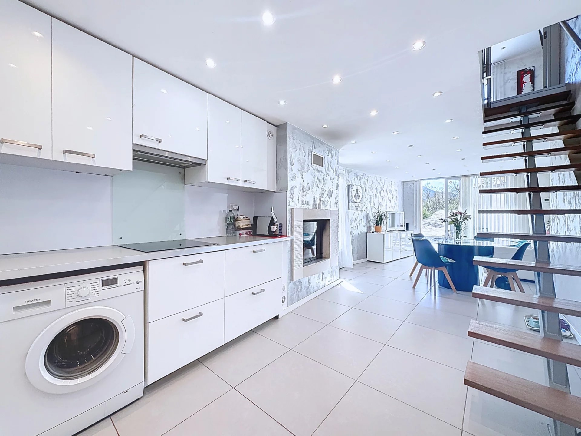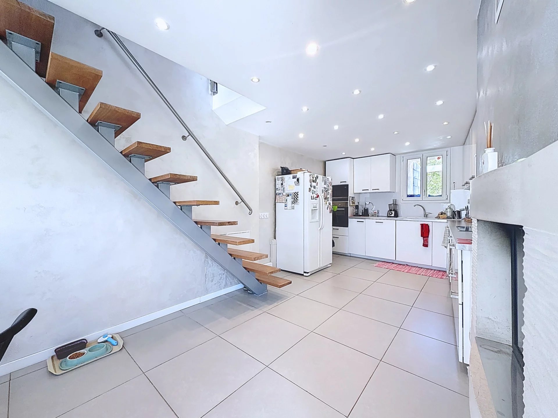 Séjour lumineux avec cuisine américaine aménagée équipée,