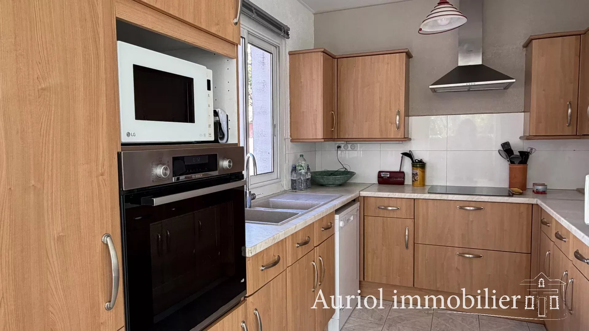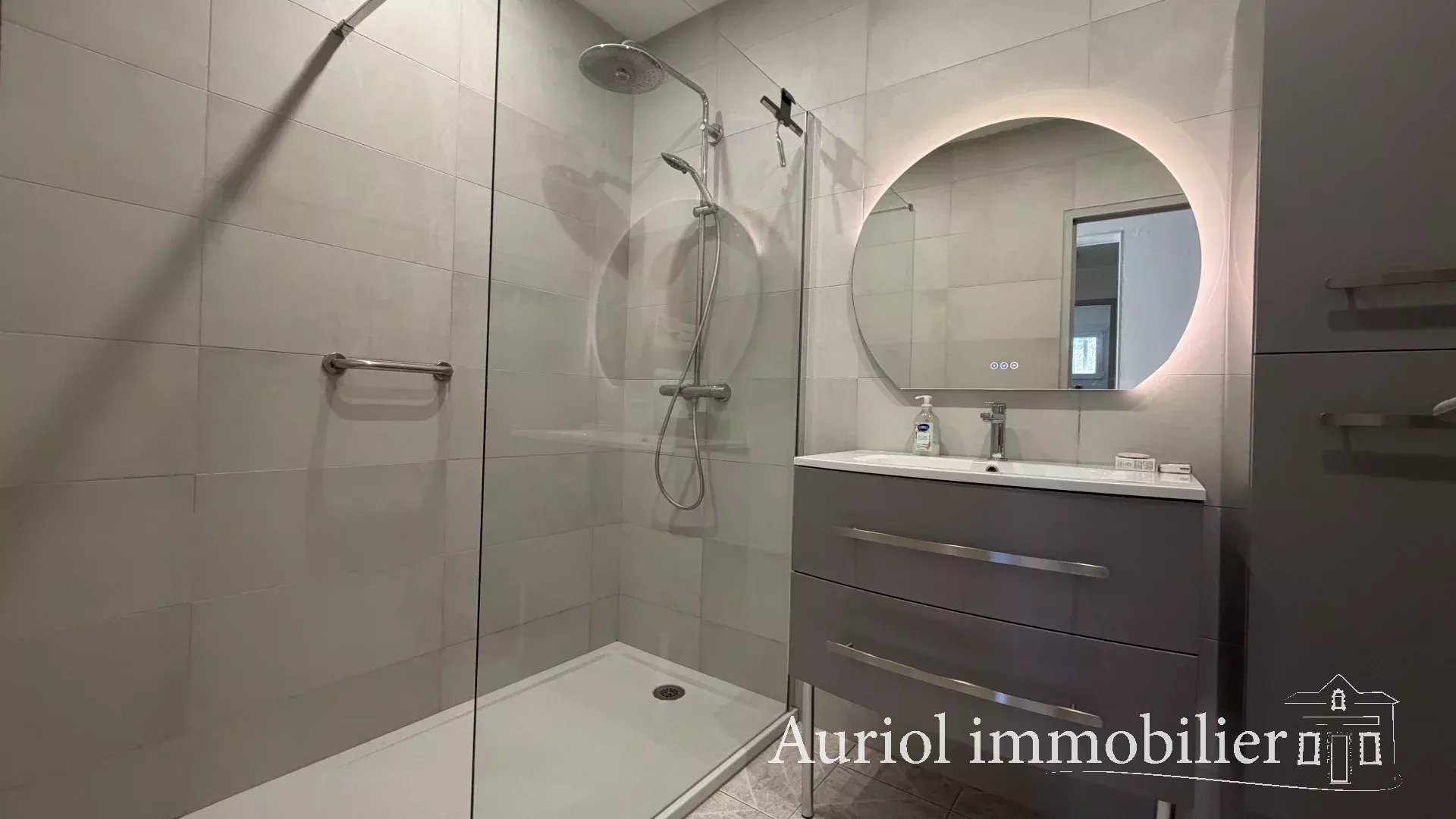Cette villa de 97 m² dispose d'une entrée sur vaste salon avec cheminée et terrasse, cuisine ouverte, une buanderie / cellier, 2 belles chambres, grande salle d'eau et wc individuels.