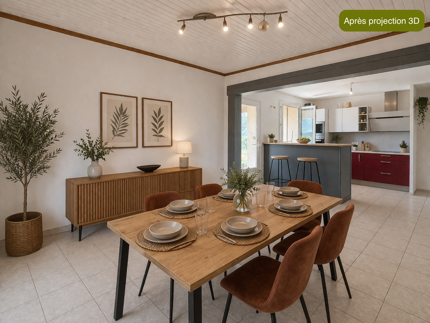 Implantée dans un cadre champêtre sans vis-à-vis, avec une vue dégagée sur les 3 Becs, cette maison de plain-pied d'environ 79 m2 est édifiée sur un terrain clos de 1 717 m2, proposant un grand garage et un double car port.