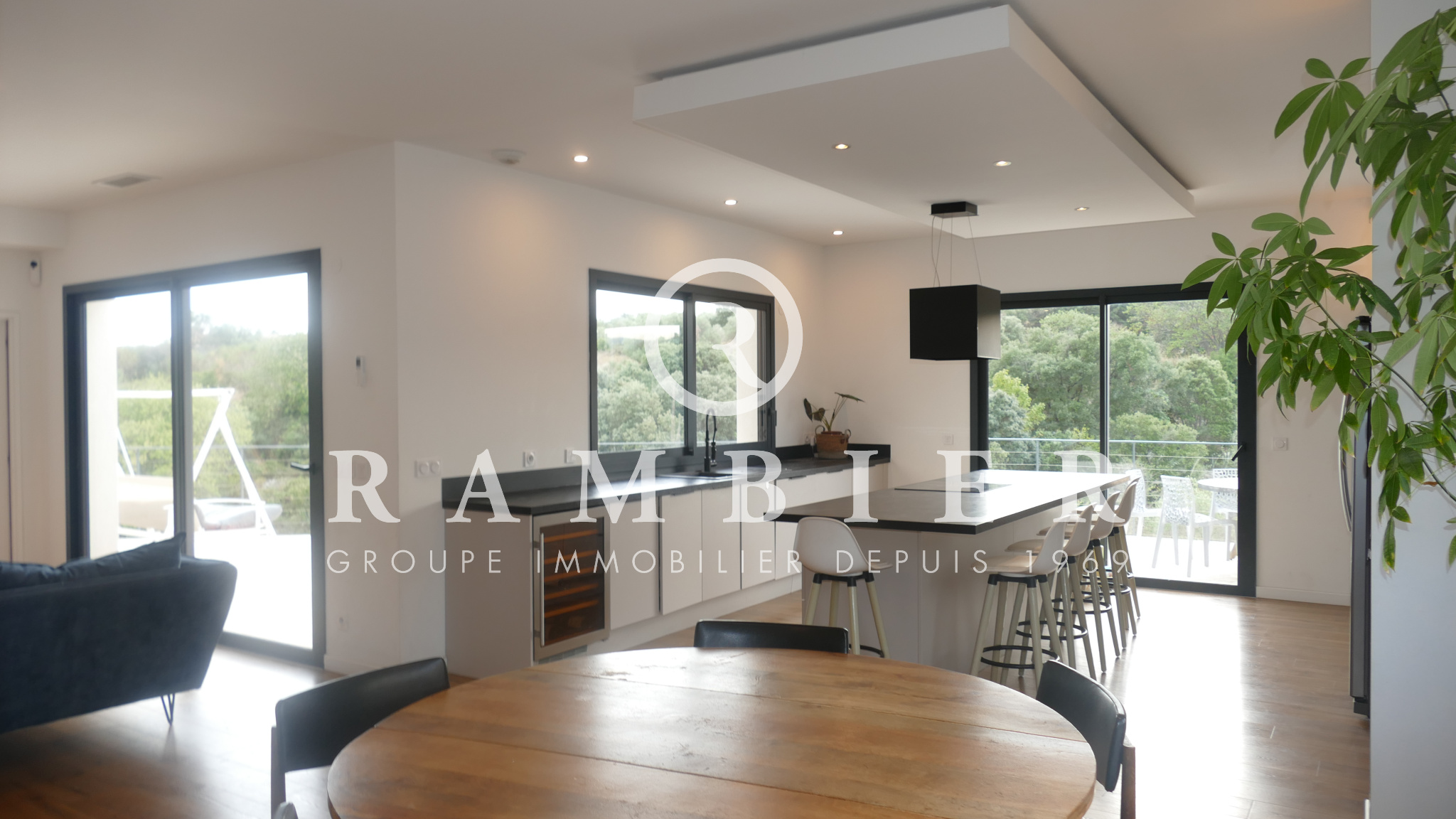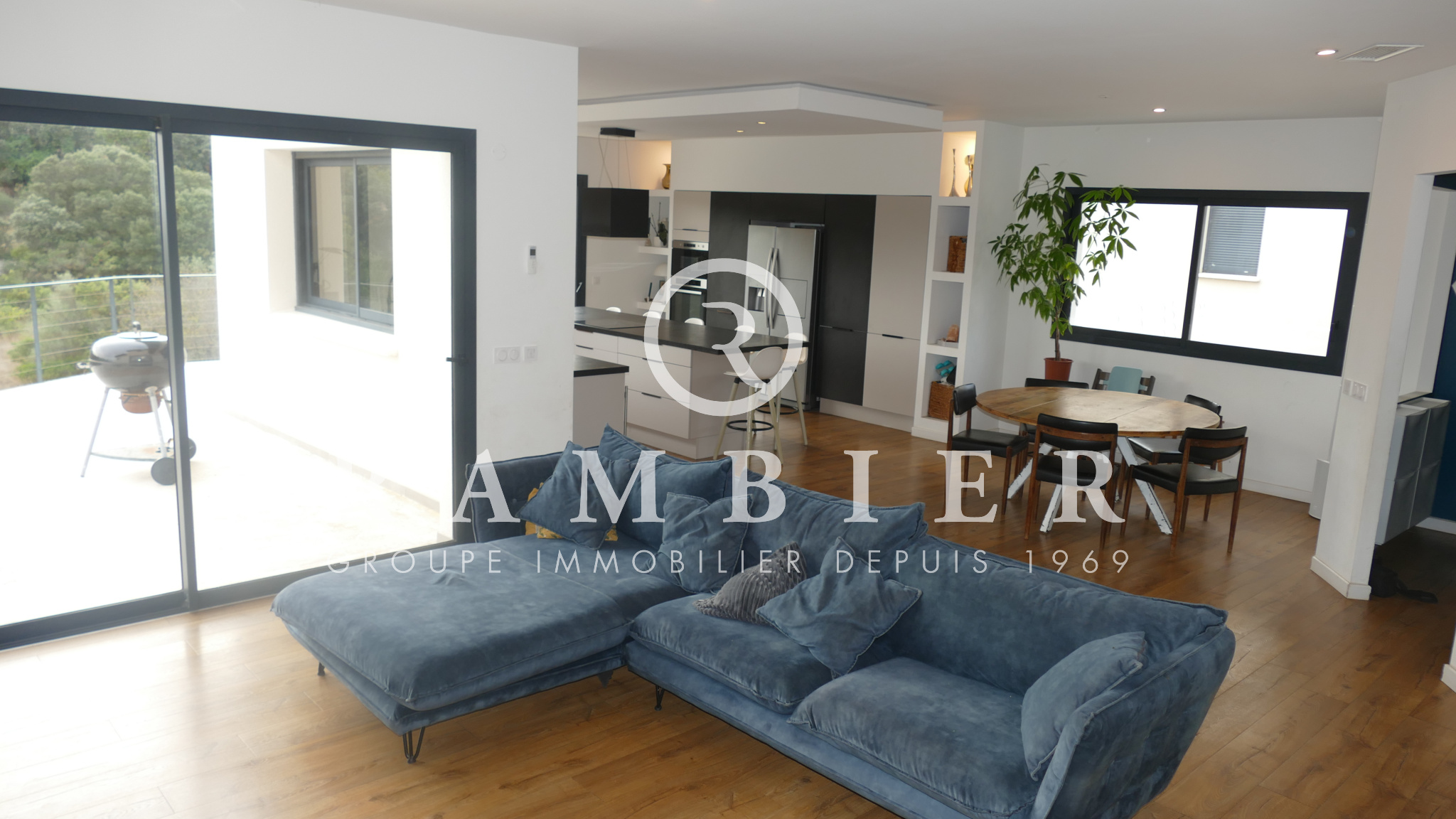 En exclusivité idéalement située, à seulement 20 minutes des plages, magnifique maison récente à la vue dégagée imprenable offrant 140 m2 de surface habitable + un appartement de type 2 pièce de 30 m2 sur une parcelle de 800 m2 piscinable répartis entre un vaste séjour de 64 m2, 4 chambres dont une suite parentale, une salle de bains,WC, buanderie, garage de 52 m2.