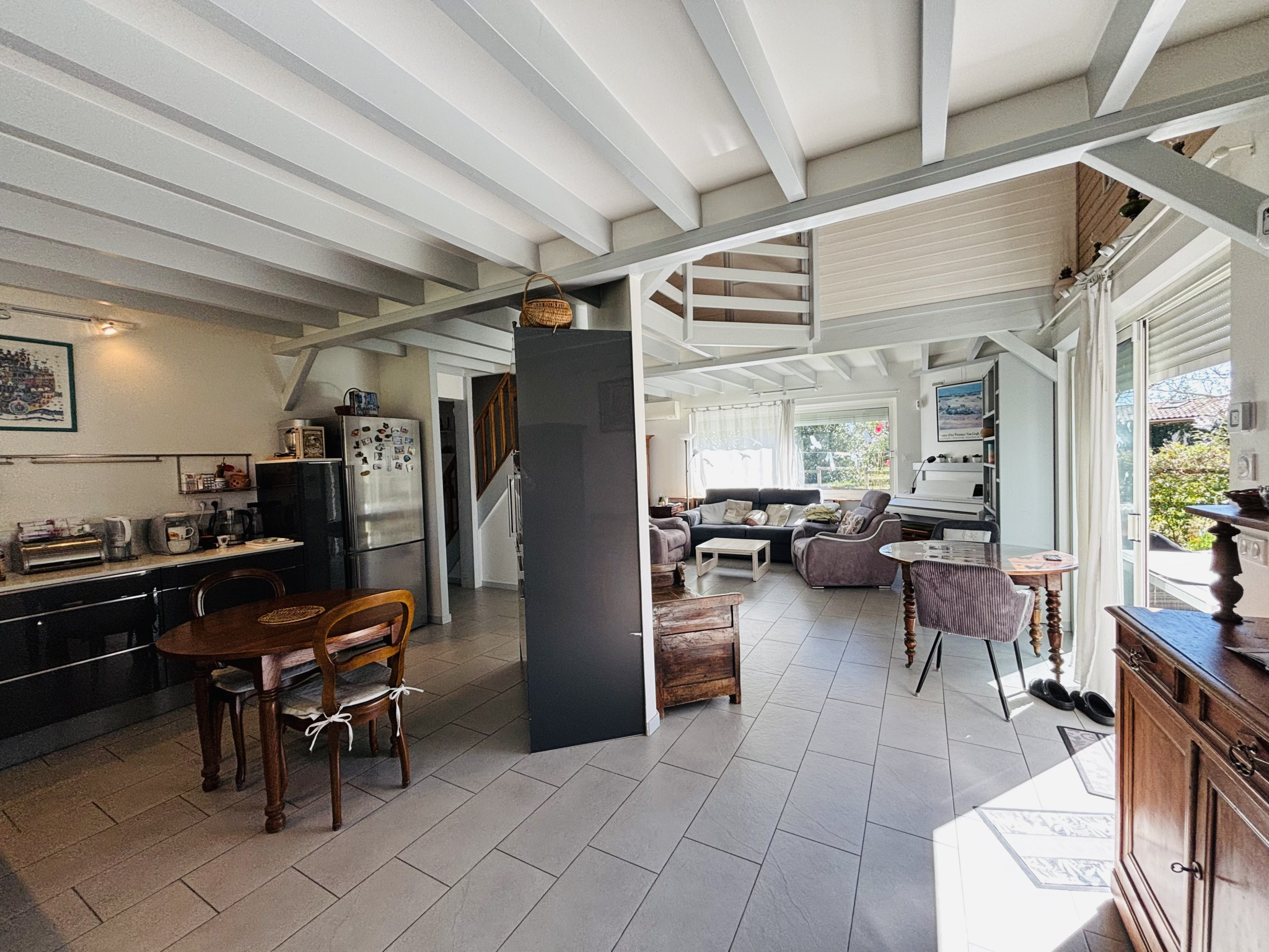 Exclusivité Agence - CARCANS, Située dans un environnement recherché, au calme d'une impasse et à proximité immédiate des commerces et services, découvrez cette maison familiale de type 4 d'environ 122 m2. Élevée sur deux niveaux, elle se compose au rez-de-chaussée d'une entrée, d'un séjour lumineux avec cheminée insert et cuisine ouverte aménagée et équipée, d'un cellier avec WC, d'une salle d'eau avec WC, d'une chambre et d'une véranda avec vue dégagée sur le jardin. À l'étage, un palier dessert deux belles chambres. À l'extérieur, vous bénéficierez d'un carport attenant, d'une terrasse couverte ainsi que d'un abri de jardin et de diverses dépendances. Implantée sur une belle parcelle d'environ 1 500 m2, entièrement aménagée et soigneusement entretenue, cette propriété offre également la possibilité d'y implanter une piscine. Cette maison offre un cadre de vie agréable, au calme, tout en étant à proximité immédiate des commodités et des pistes cyclables. Le petit plus :une belle surface de dépendances offrant de nombreuses possibilités (atelier d'artiste, hébergement pour famille et amis...). Une maison fonctionnelle et évolutive, idéale en résidence principale comme en maison de vacances. Votre agent immobilier local : Aurélie PHOENIX 06.38.67.72.82 - MAXIME PHOENIX IMMOBILIER agences locales et indépendantes situées à Carcans et Maubuisson. Honoraires à la charge de l'acquéreur : 5,13 % TTC (390 000 EUR hors honoraires).