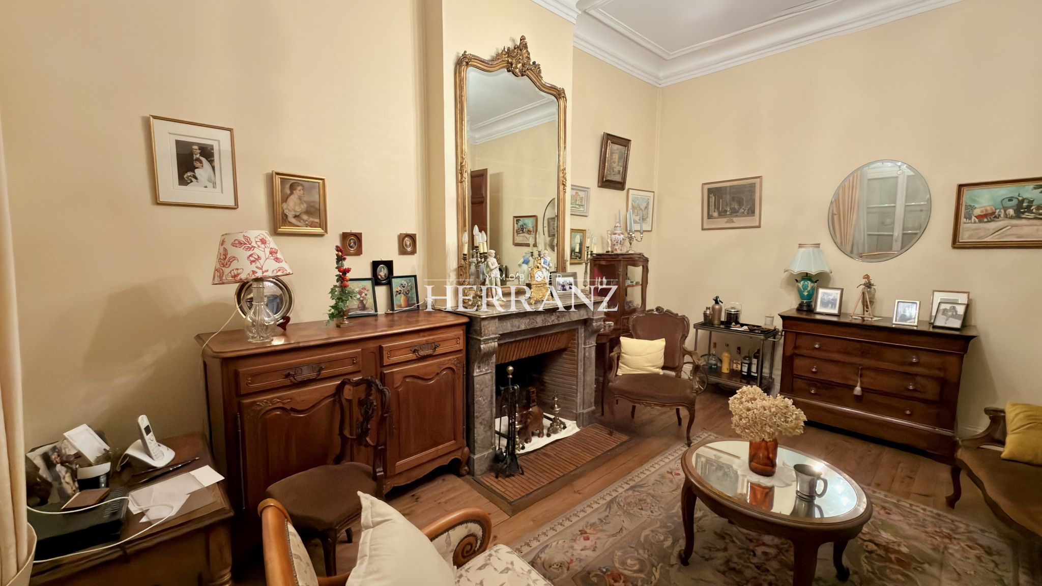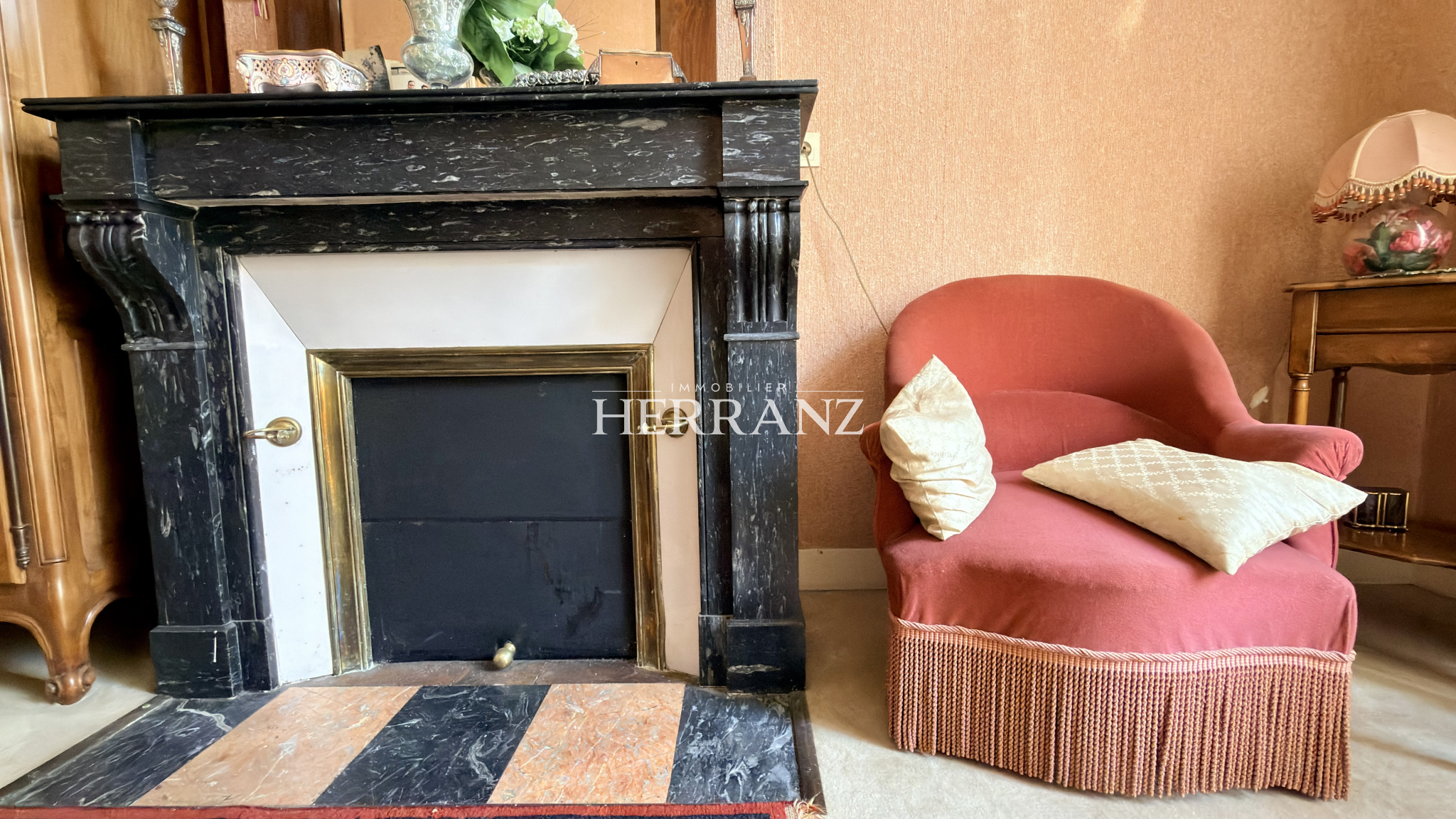Dès l'entrée, les éléments d'époque séduisent : cheminées d'ornement, parquets d'origine, moulures, soubassements et escalier en pierre confèrent à l'ensemble une véritable élégance.