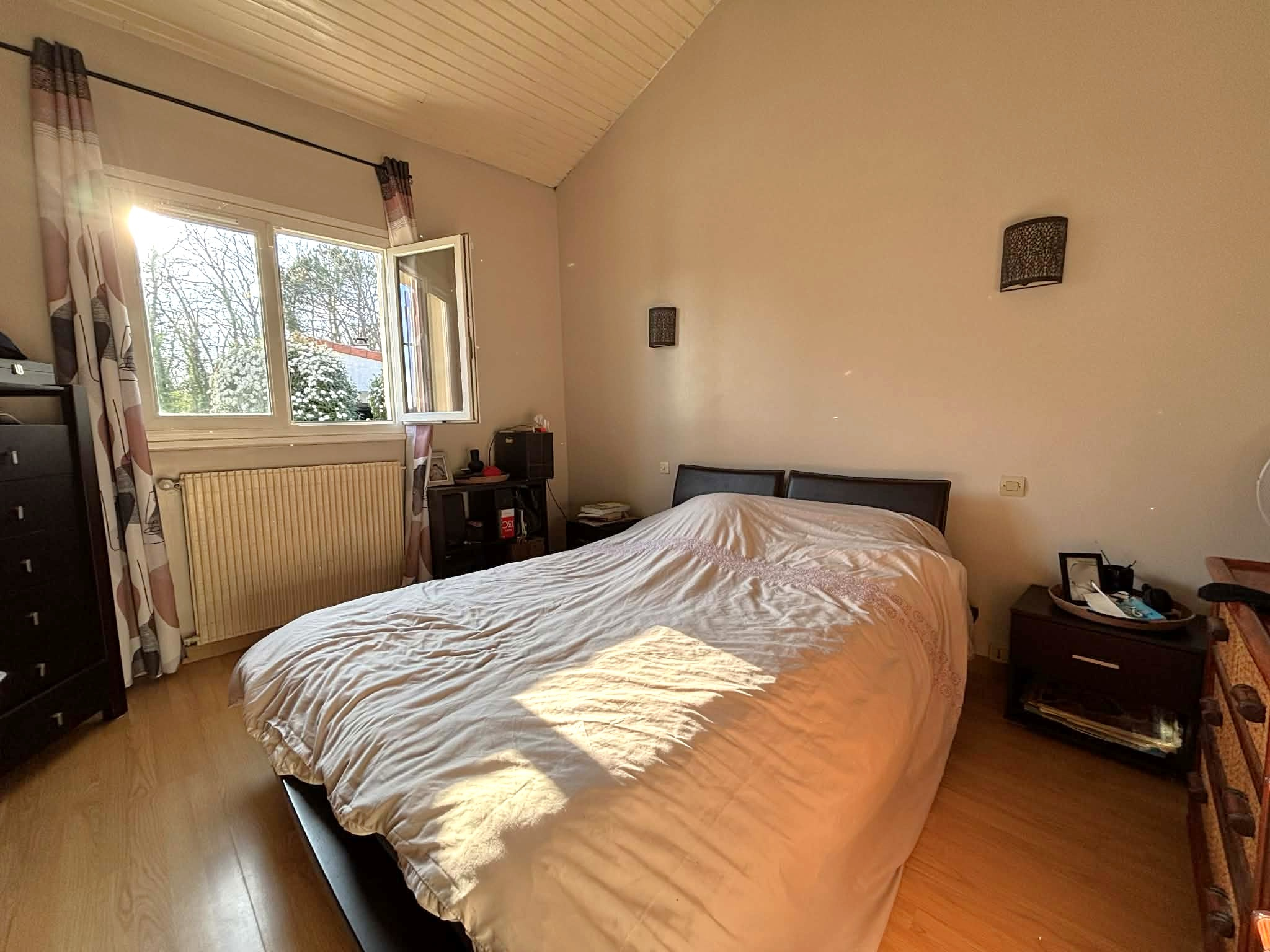 L'espace nuit propose trois grandes chambres, une salle d'eau et un WC indépendant, tandis qu'à l'étage une chambre supplémentaire avec sa salle d'eau offre un espace idéal pour recevoir ou avoir un coin repos indépendant.